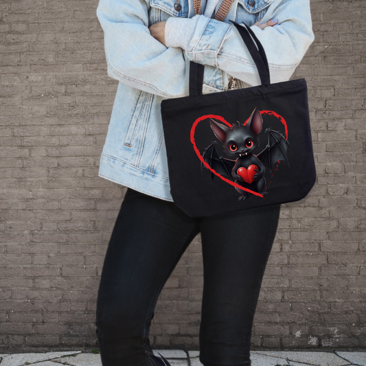 Love Bites Zippered tote bag gift for horror fan reusable shopping tote gothic Valentine bat horror tote bag gift for her