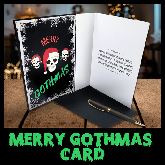 Merry Gothmas card gothic christmas card gift skulls holiday card goth card for her santa skull card for him