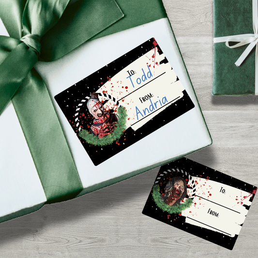 Art & Victoria Christmas Gift Tags Terrifier gift Horror gifttags creepy gothic gift scary birthday gift Art the clown gift gothic christmas Terrifier wrapping paper accessory