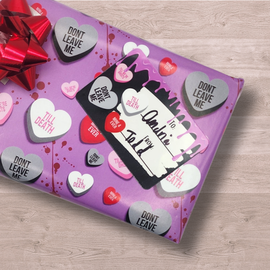 Sinister Candy Hearts Gift Wrap | Gothic Valentine Wrapping Paper | Creepy Cute Horror Love Wrap