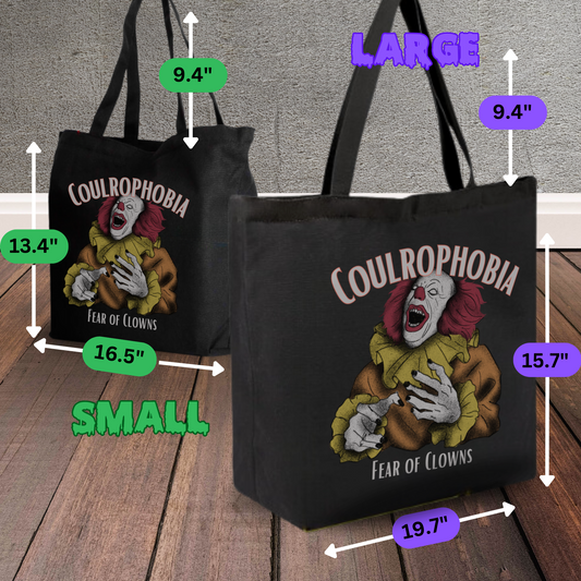 Coulrophobia tote bag with zipper closure, clown phobia tote bag, gift for horror fan, reusable shopping tote, horror movie tote bag gift for her