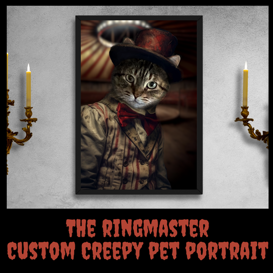 The Ringmaster Pet Custom Creepy Pet Portrait Personalized Pet portrait digital download vintage circus pet portrait gift for her