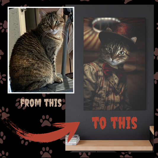 Count on us to collaborate closely with you, ensuring your pet's distinct personality is immortalized in a portrait that will go down in creepy history! Let's turn your beloved pet into an unforgettable, chilling work of art together.
