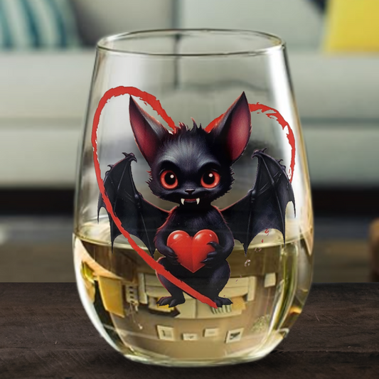 Love Bites Stemless Wine Glass 17oz wine glass Spooky Gift for Couples vampire bat drinking glass set Halloween Weddings Housewarmings gothic bat valentine gift Gothic Home Decor punk zombie drinkware Gothic drinkware