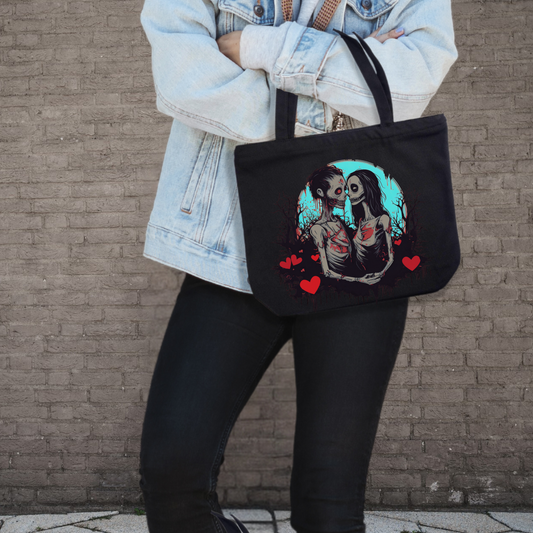 Zombie Love Zippered tote bag gift for horror fan reusable shopping tote punk Valentine zombie horror tote bag gift for her
