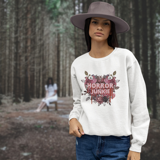 Horror Junkie Sweatshirt womens oversized sweatshirt gift Horror gothic flowers sweatshirt horror sweatshirt gift for her men's gothic heart sweatshirt