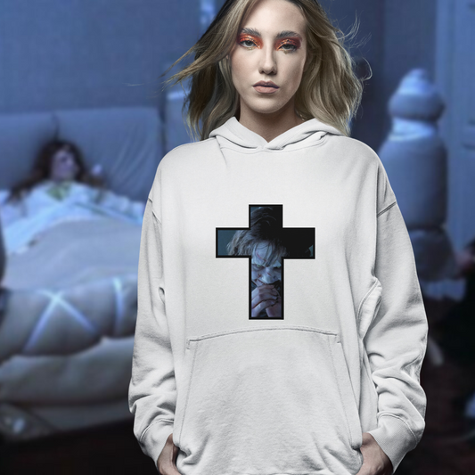Crucifix Regan Hooded Sweatshirt Exorcist hoodie horror hoodie horror sweatshirt gift for her crucifix hoodie horror fan gift for him