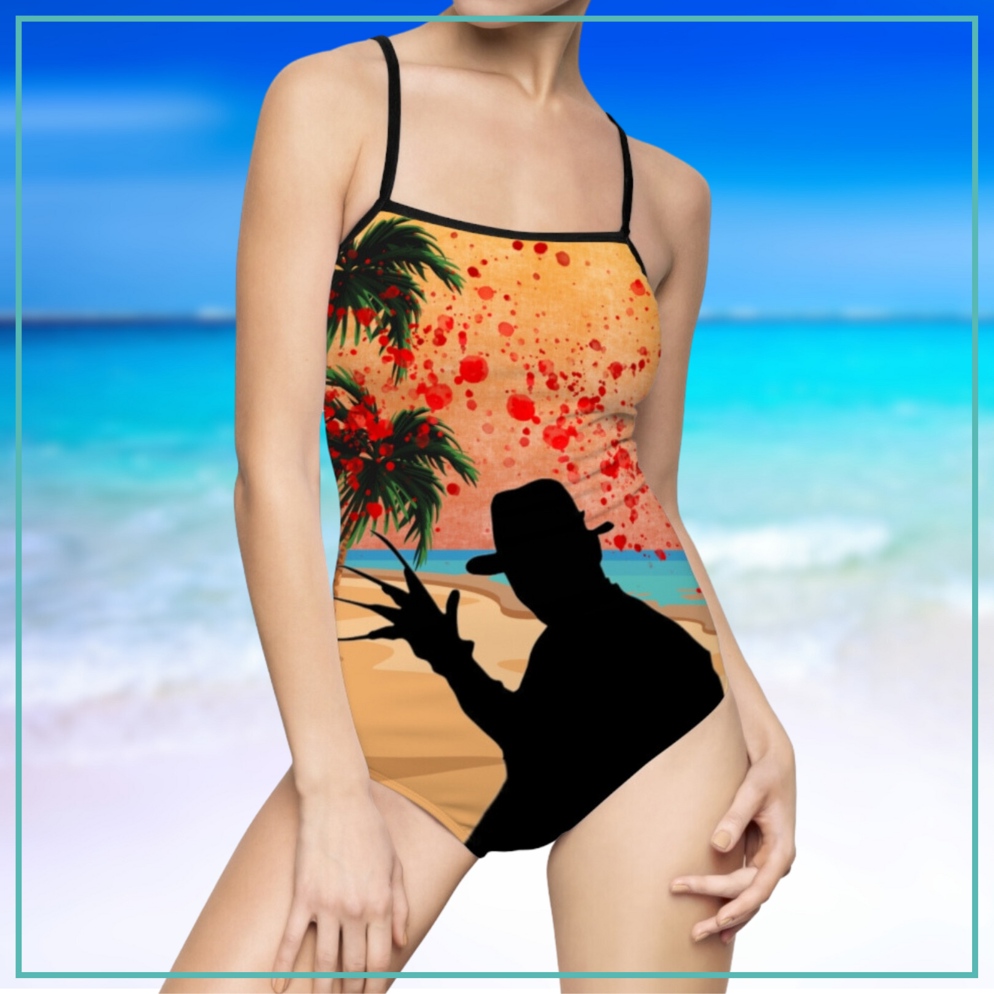 Beachy Freddy strappy one piece women's swimsuit Nightmare on Elm Street inspired movie horror fan swimsuit gift for her Freddy Krueger horror one piece