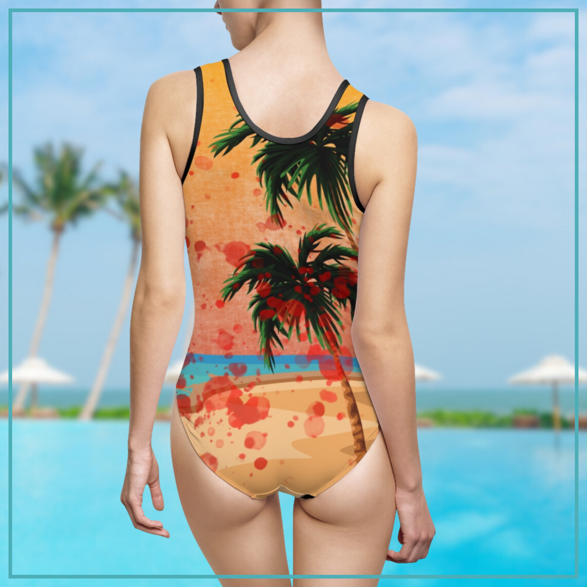 Designed for making a bold statement on your beach vacation, this suit is not just about looks – it's crafted to withstand the effects of chlorine, ensuring that the vividness of the design lasts over time. The composition of 83% nylon and 17% spandex provides both comfort and flexibility.