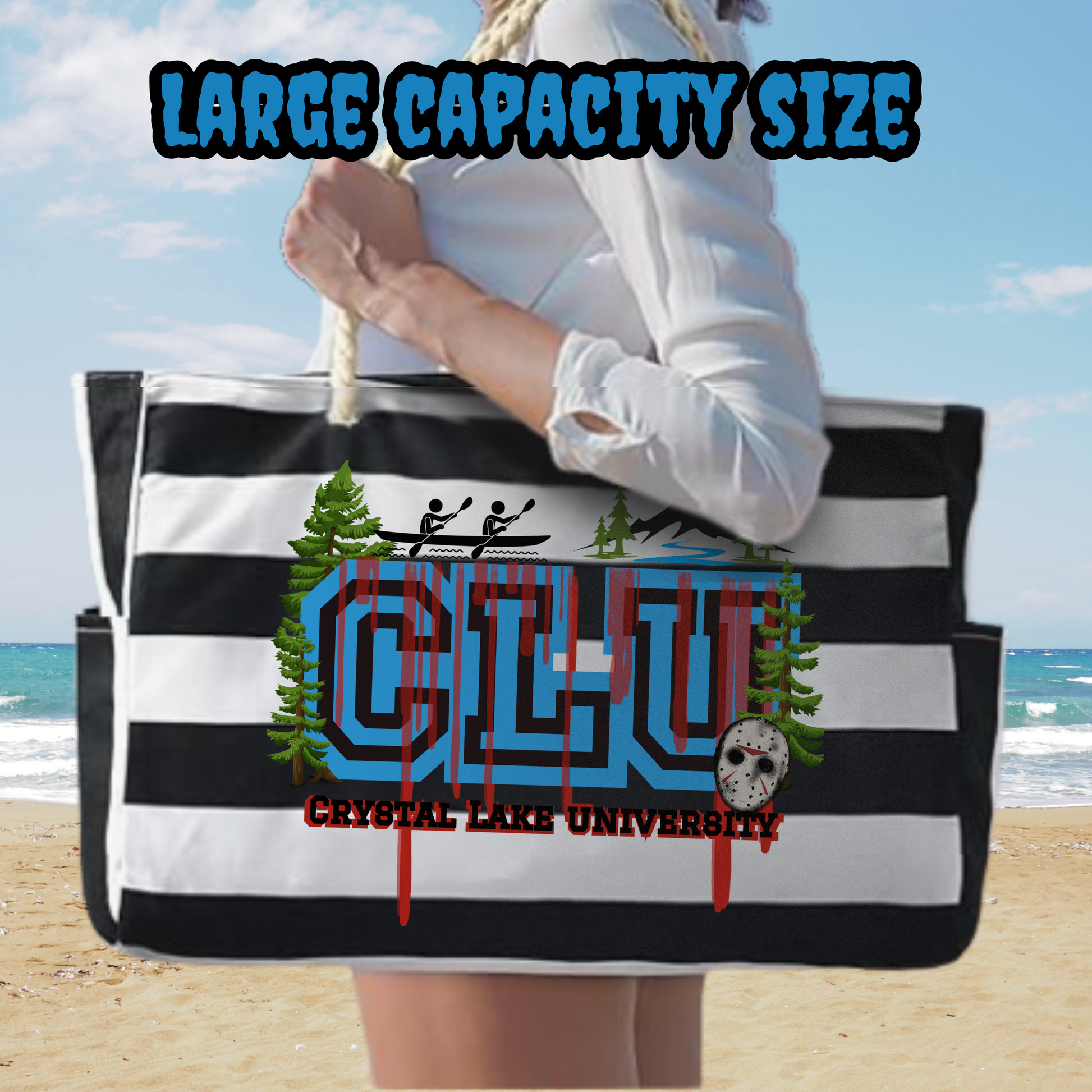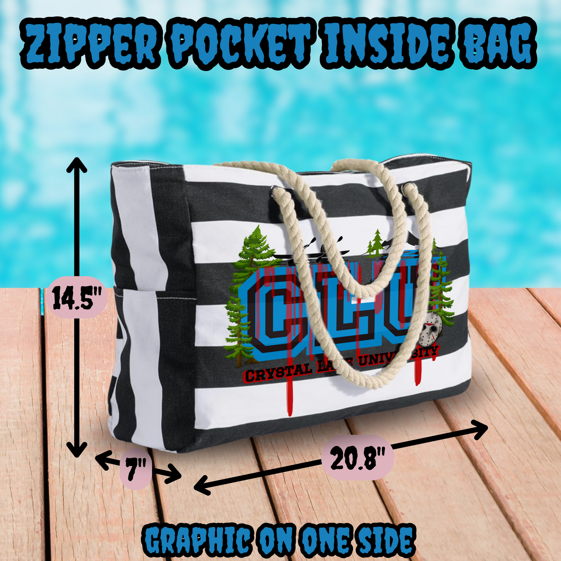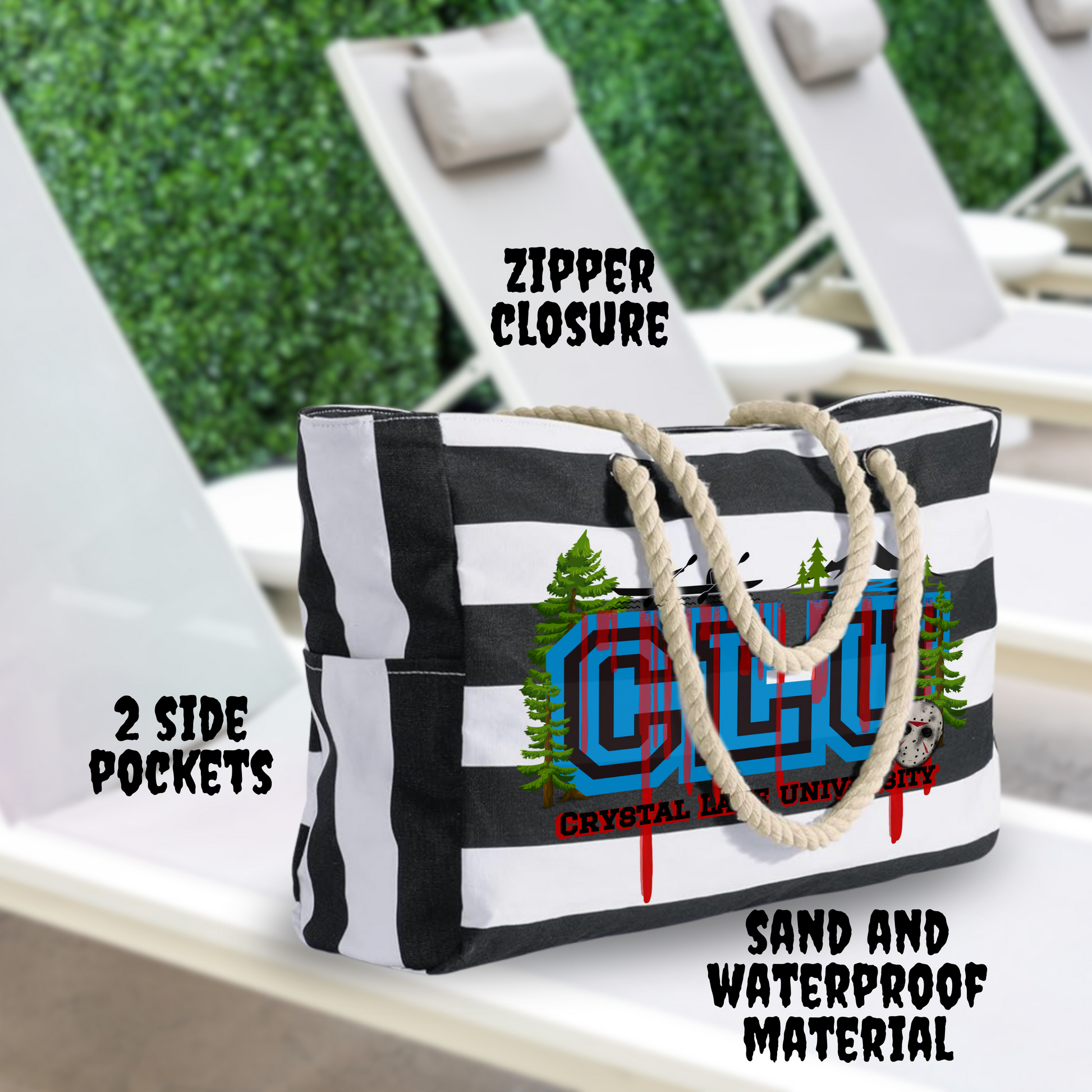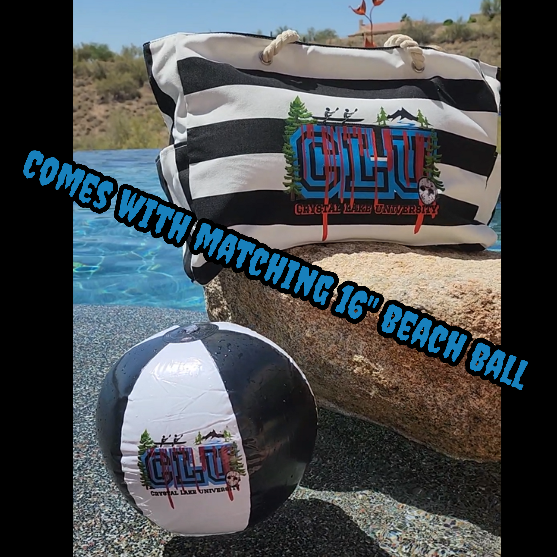 Crystal Lake University Beach Bag & Beach Ball Set – Horror Tote Inspired by Friday the 13th