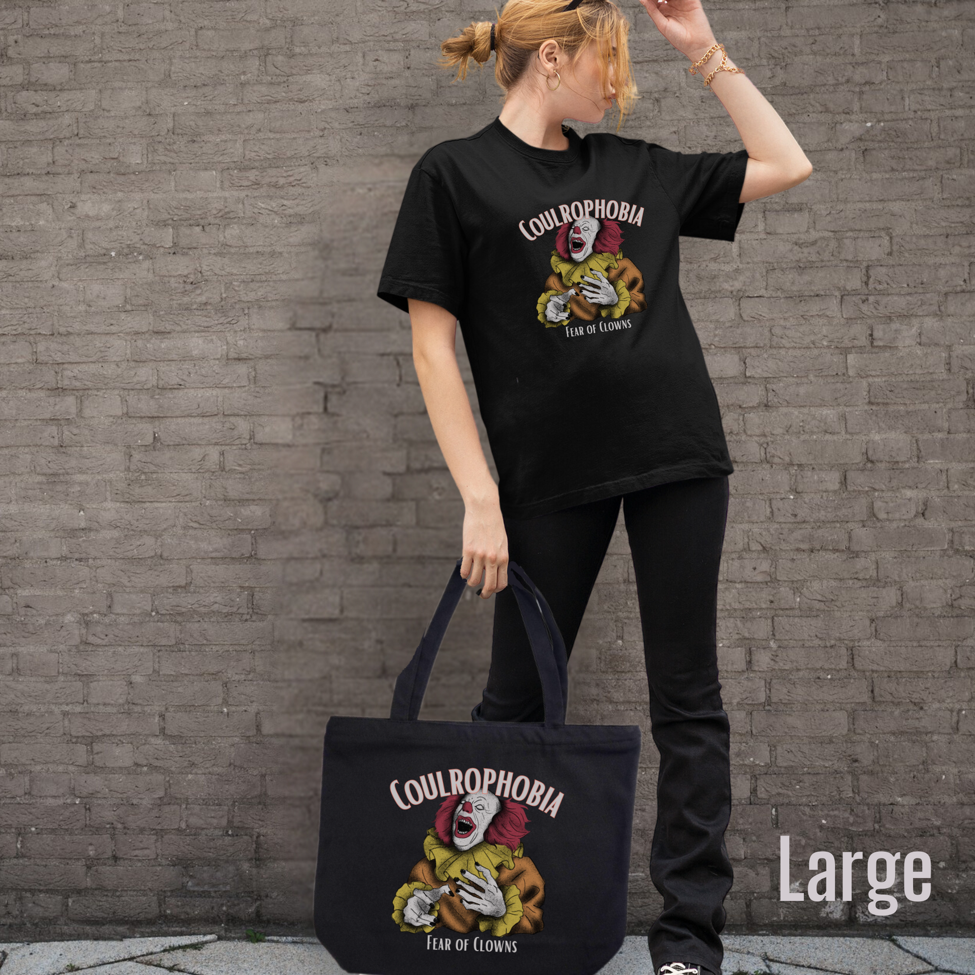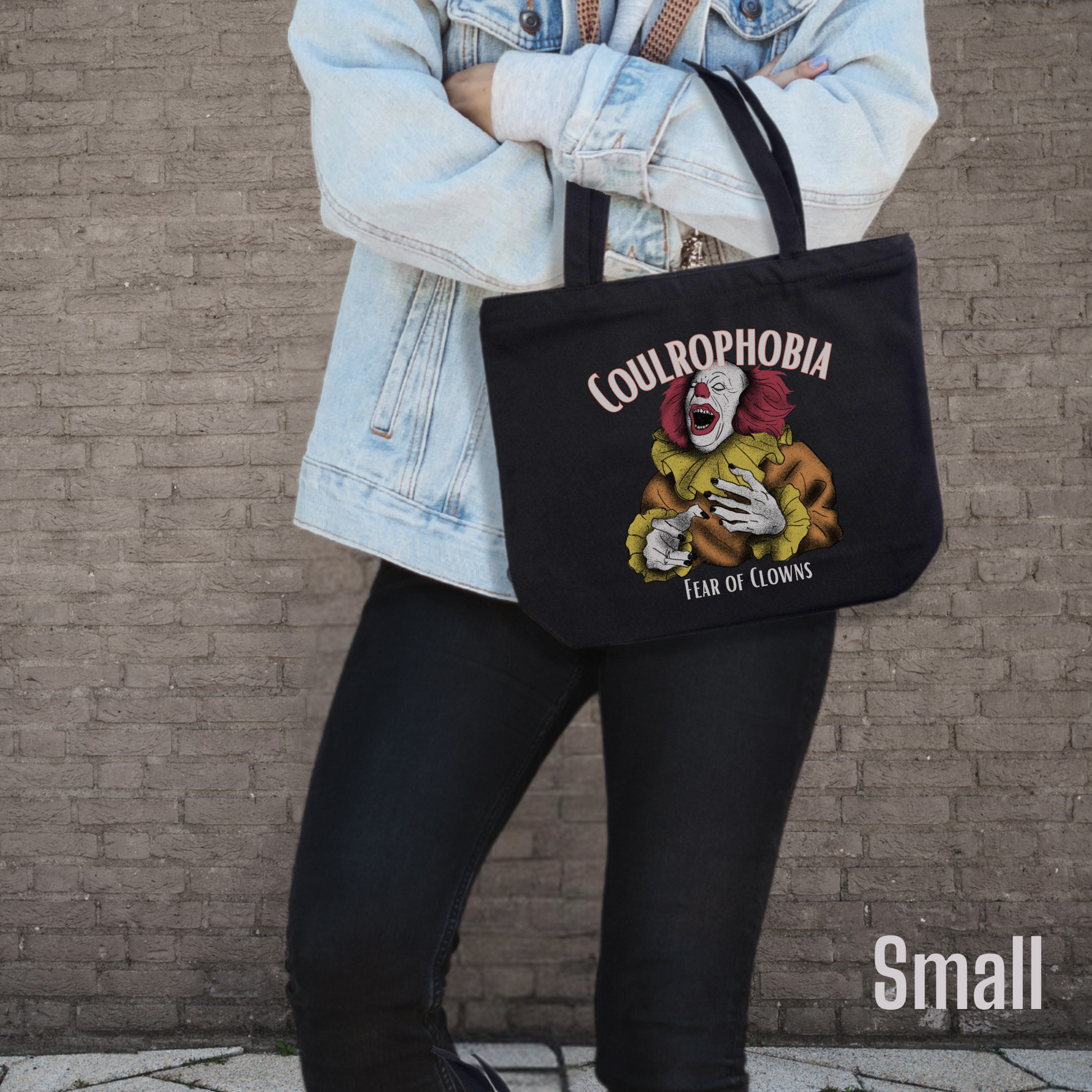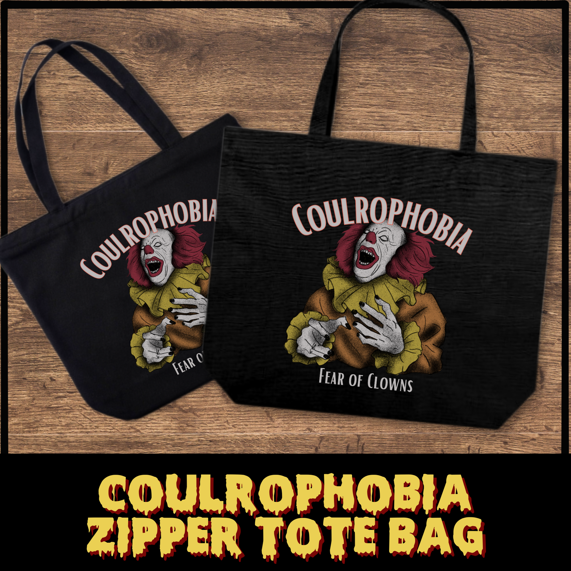 Coulrophobia tote bag with zipper closure, clown phobia tote bag, gift for horror fan, reusable shopping tote, horror movie tote bag gift for her