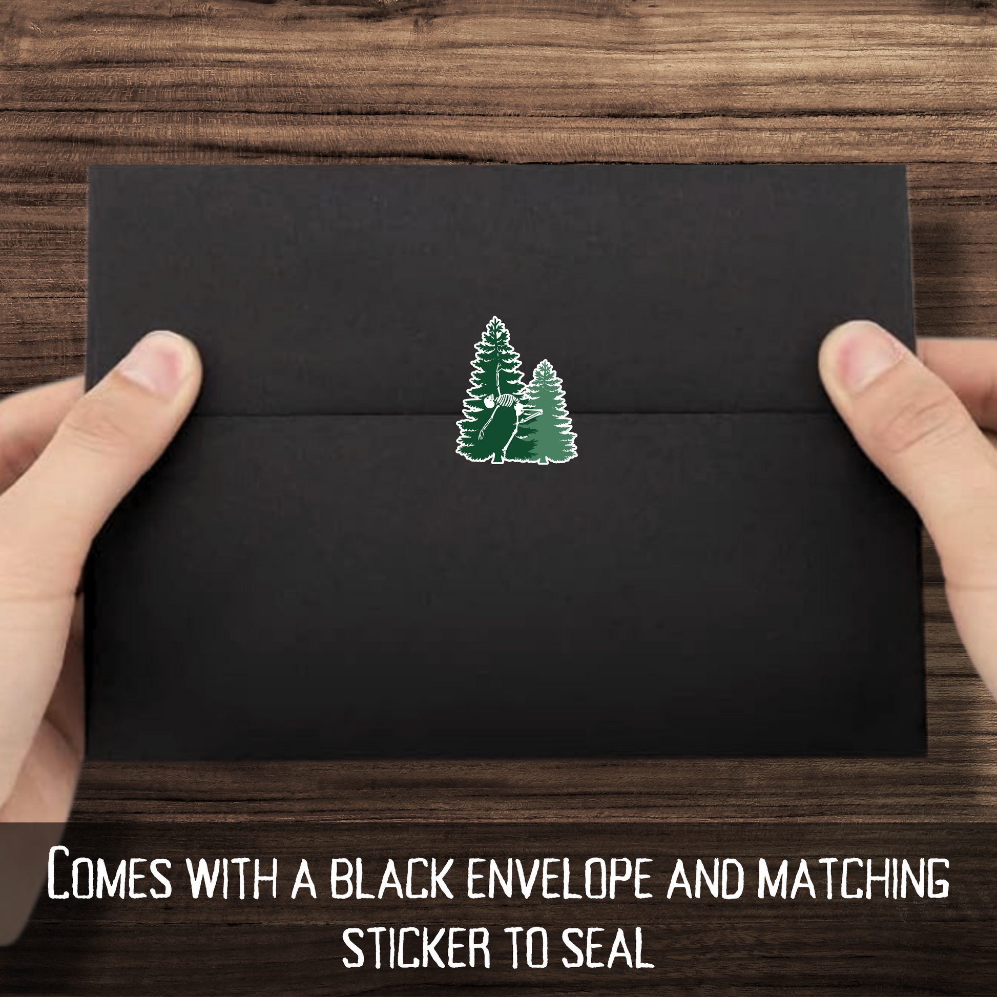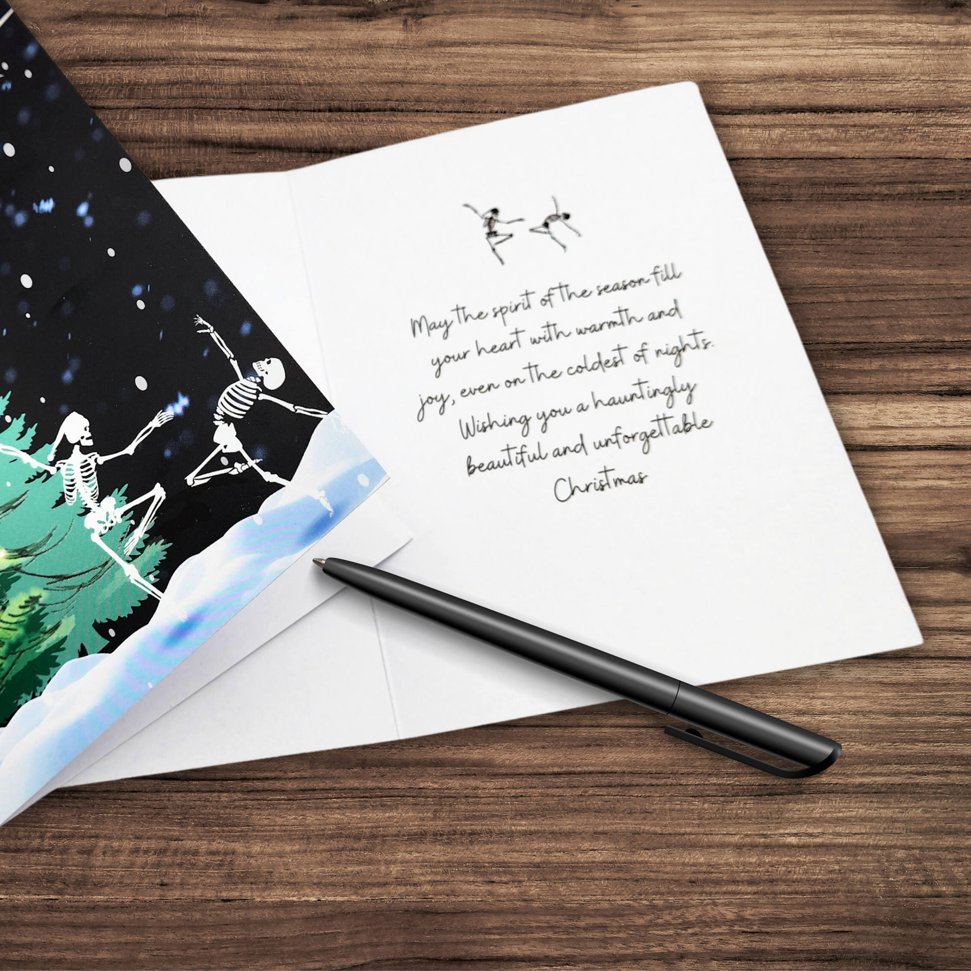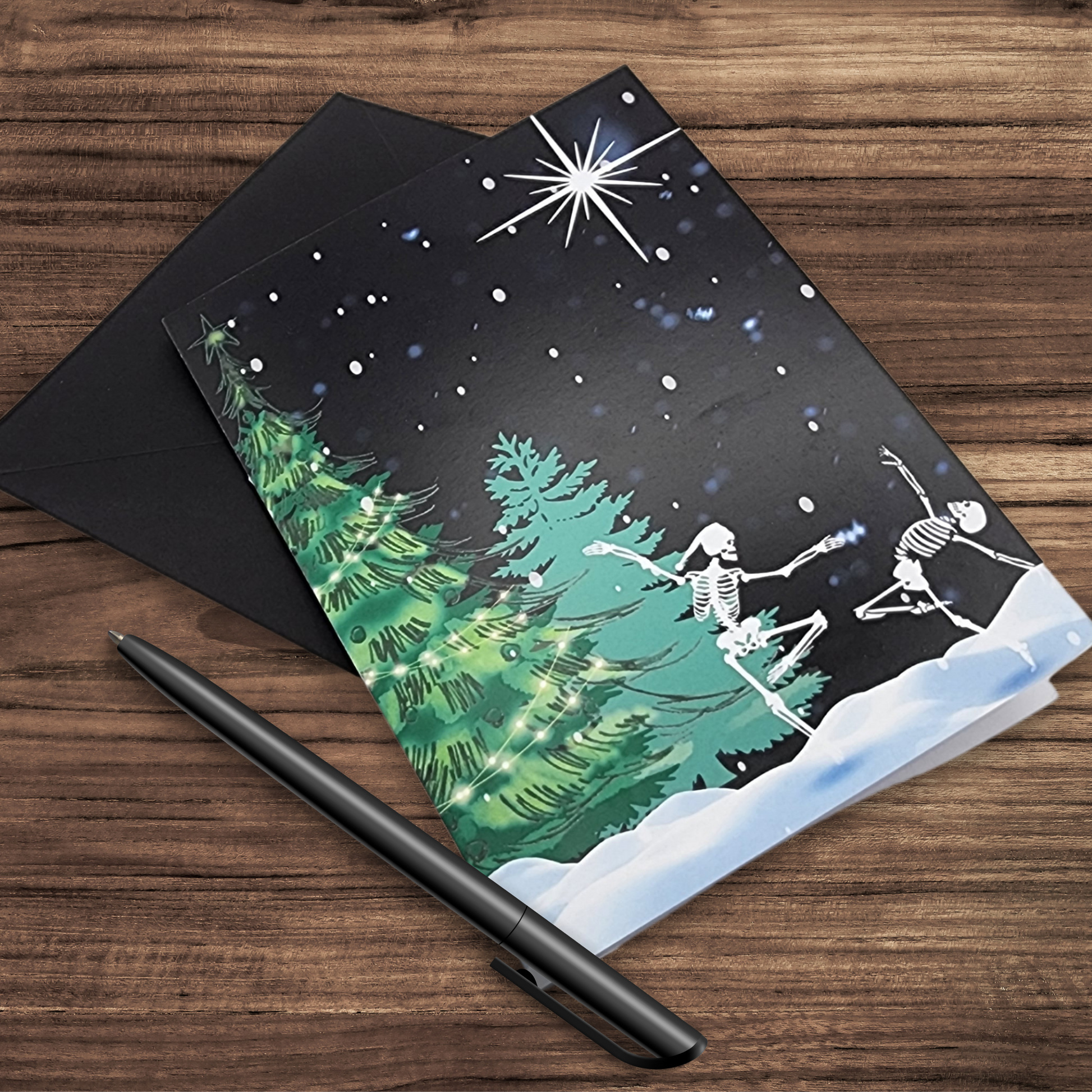 * A Pine tree with dancing skeleton sticker included to help seal your card with holiday love