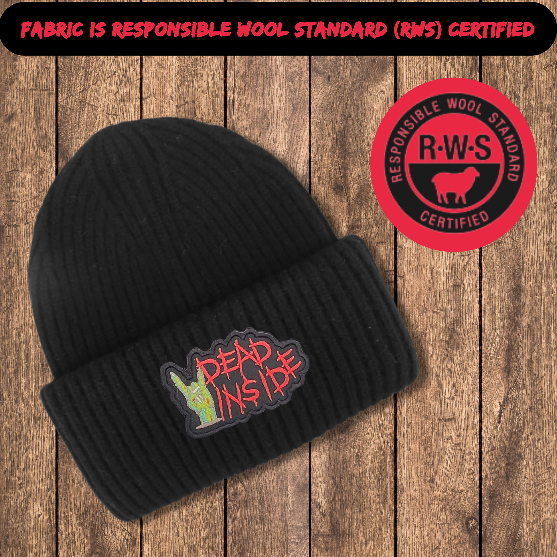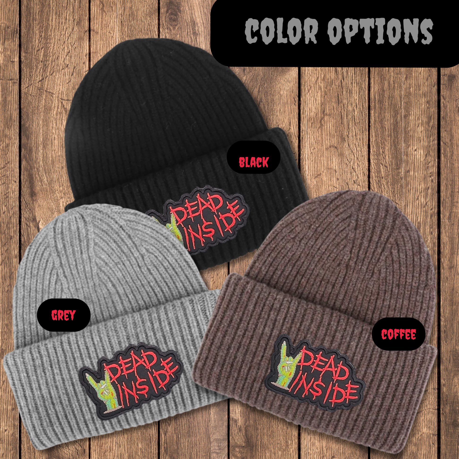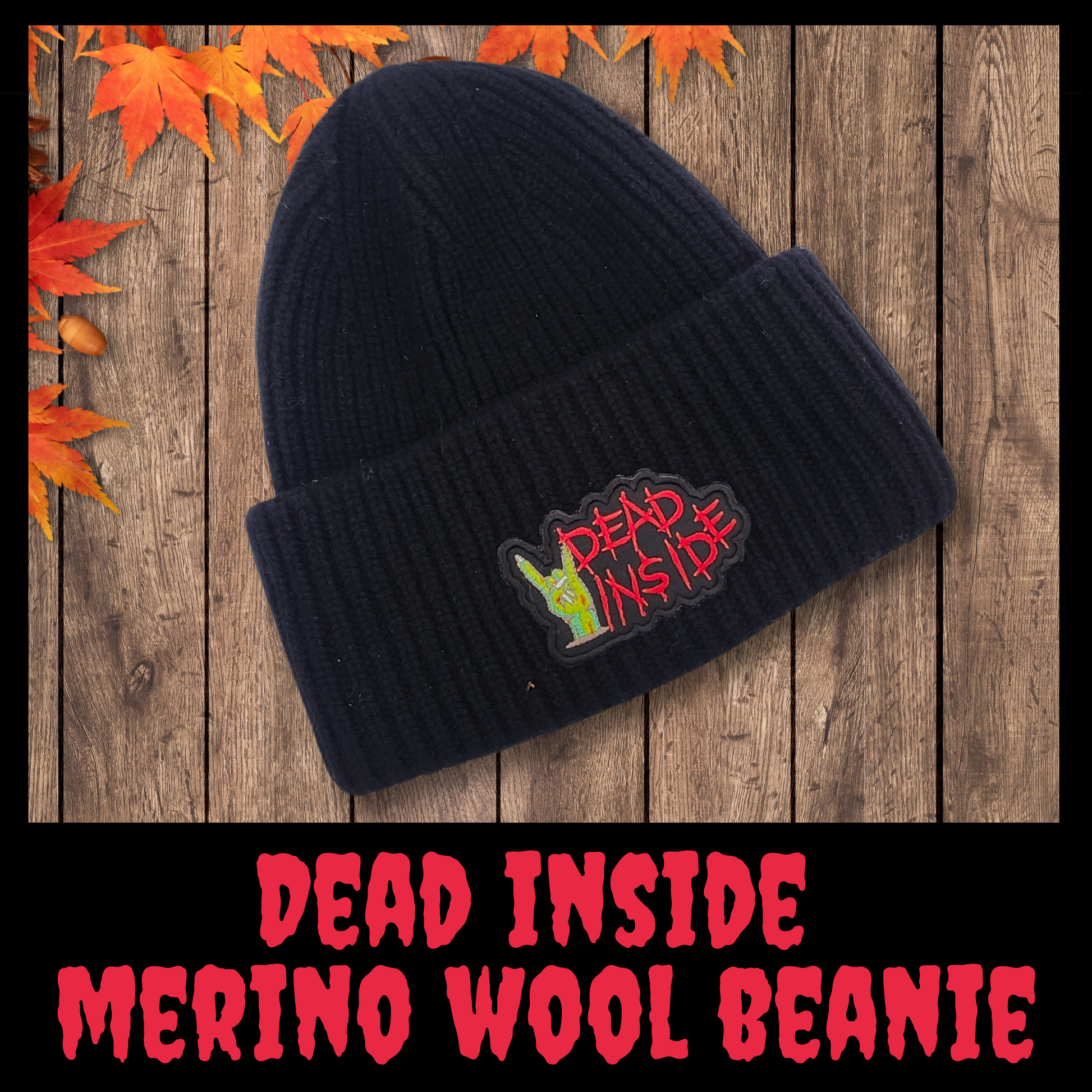 Dead Inside Merino Wool Beanie – Horror Embroidered Patch Hat, merino wool hat, Warm & Soft Skull Cap for Cold Weather, Goth Streetwear