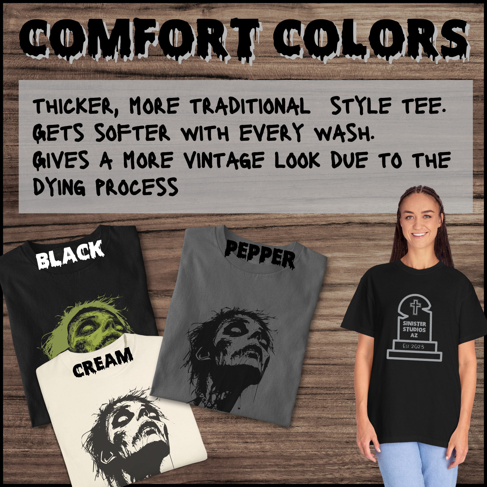 Choose your vibe: go for the soft, more fitted feel of Bella and Canvas available in Black or Silver, or keep it chill with our relaxed fit Comfort Colors in Black, Pepper, or Cream. All sizes are unisex, S-3XL, because killer style knows no bounds.