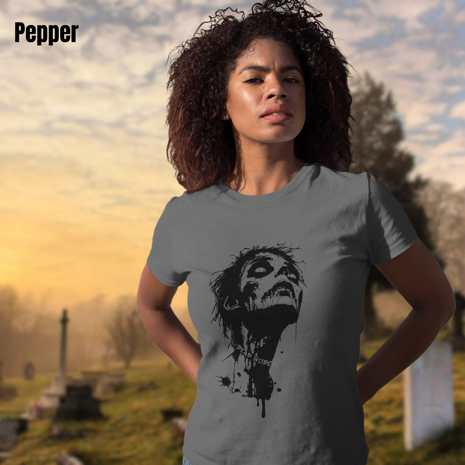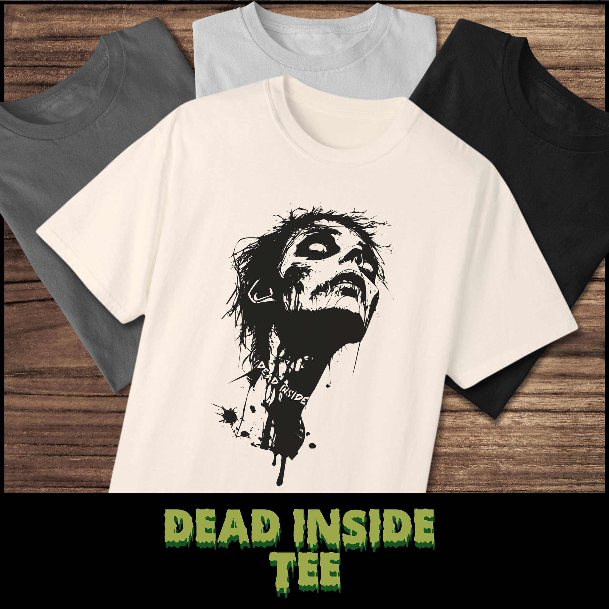 Our Dead Inside tee is here to turn heads and raise the dead! Featuring a badass female zombie in a grunge punk graphic, this shirt screams attitude with "Dead Inside" emblazoned across the neck like a choker. The graphic comes in sleek black on all color options—except the black tee, which flaunts a killer green graphic for that perfect contrast.