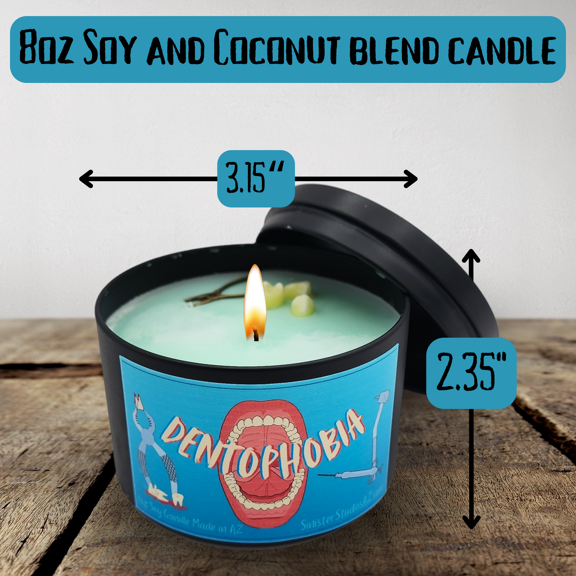 Dentophobia Candle – Fresh Mint Scented Soy & Coconut Wax Horror Candle, Creepy Dental-Themed Decor for Horror & Oddity Lovers
