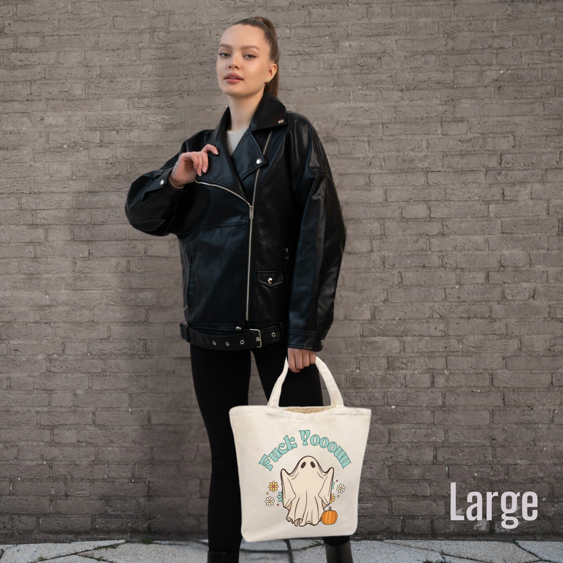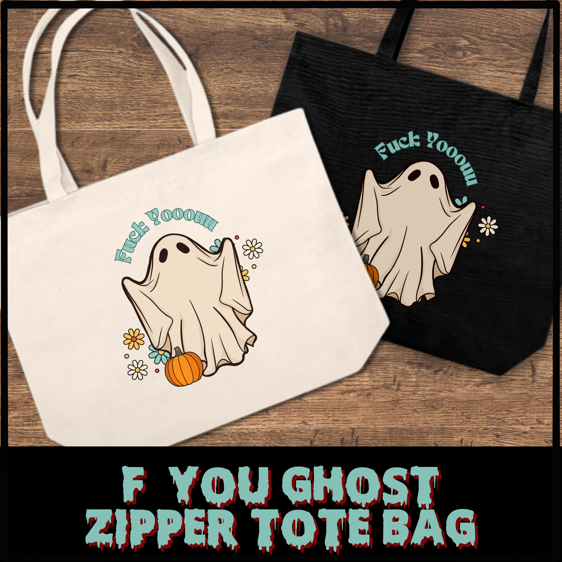 F You Ghost tote bag with zipper closure, halloween tote bag, retro ghost tote bag, gift for horror fan, reusable shopping tote, horror movie tote bag gift for her