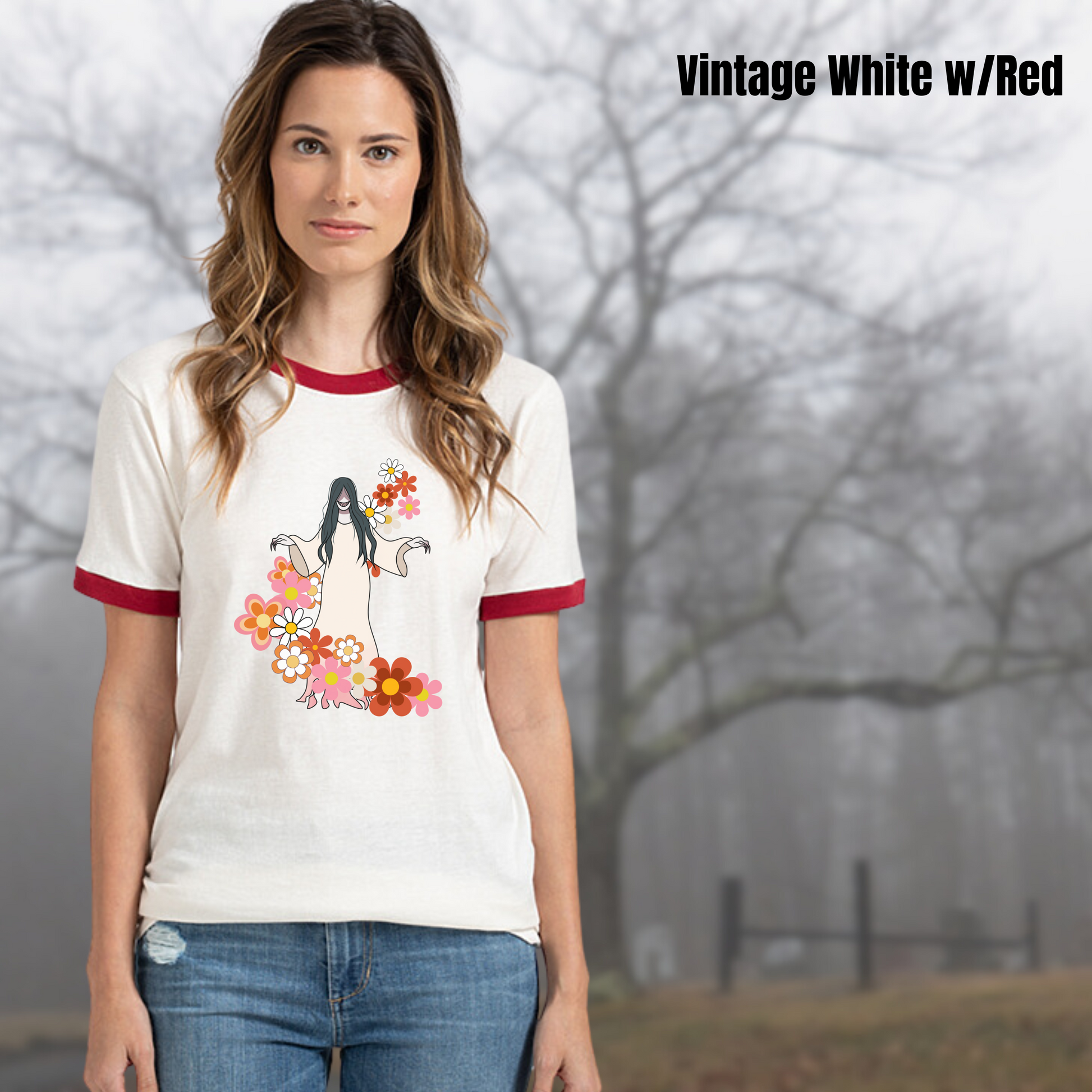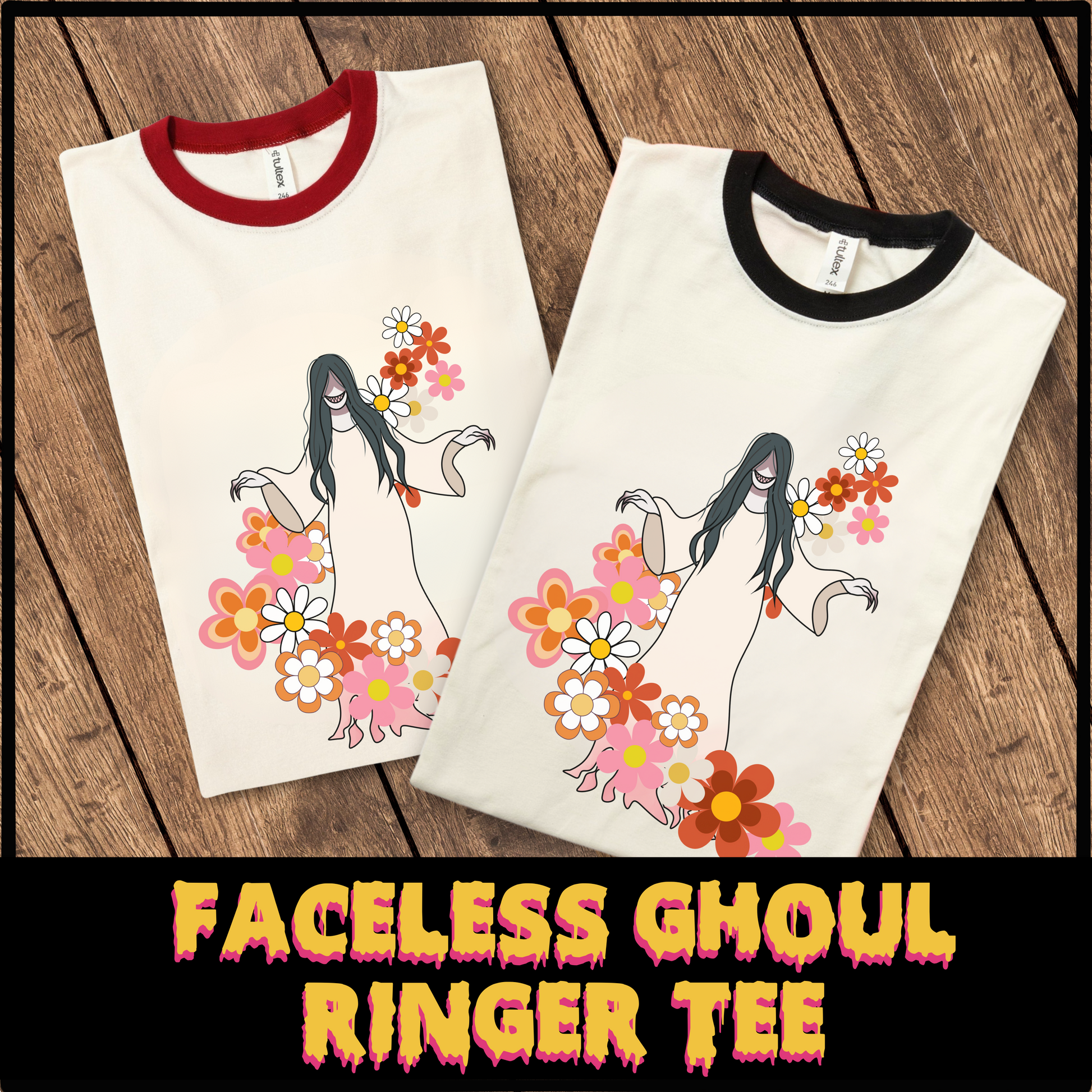 Faceless Ghoul Ringer Tee Retro ghost horror tee gift for her spooky ghoul fan ringer tee for him horror movie fan shirt