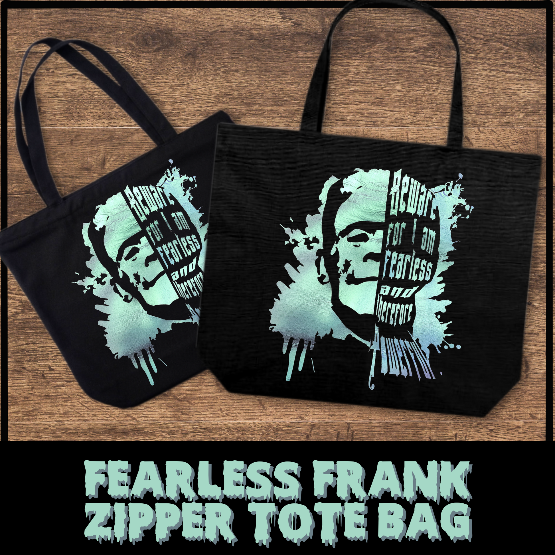 Fearless Frank Zipper Tote | Frankenstein Gothic Bag | Horror Quote Canvas Tote with Zipper