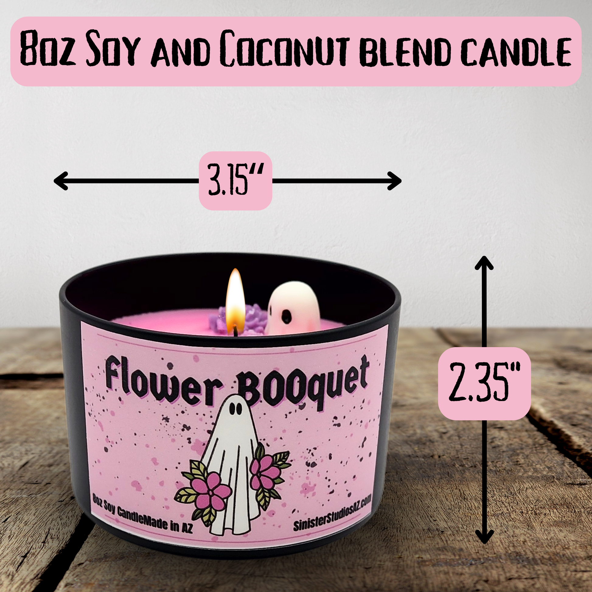 Because each candle is handcrafted, slight color variations make every one unique. Bring some ghostly charm and floral bliss to your home or office with the Flower BOOquet candle.