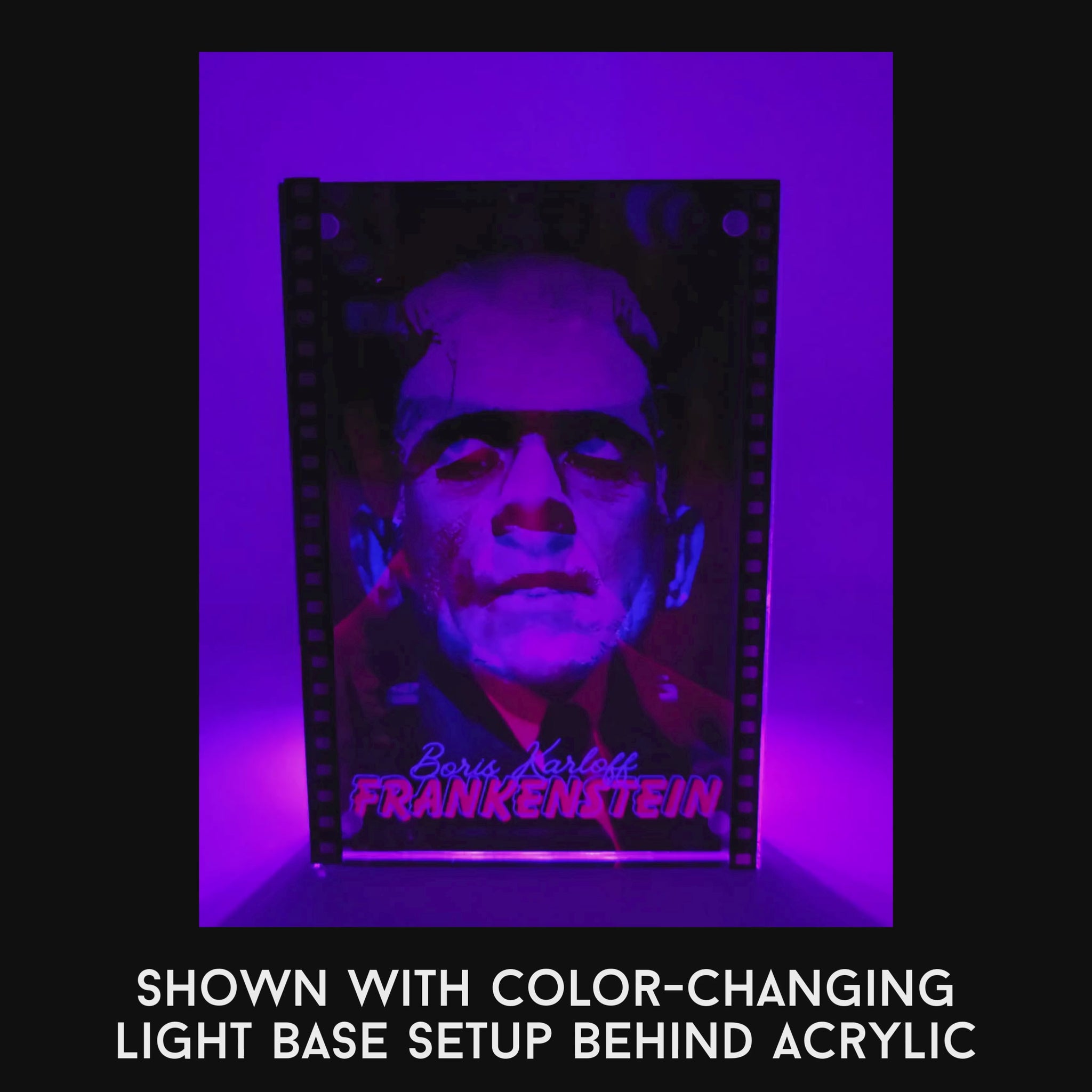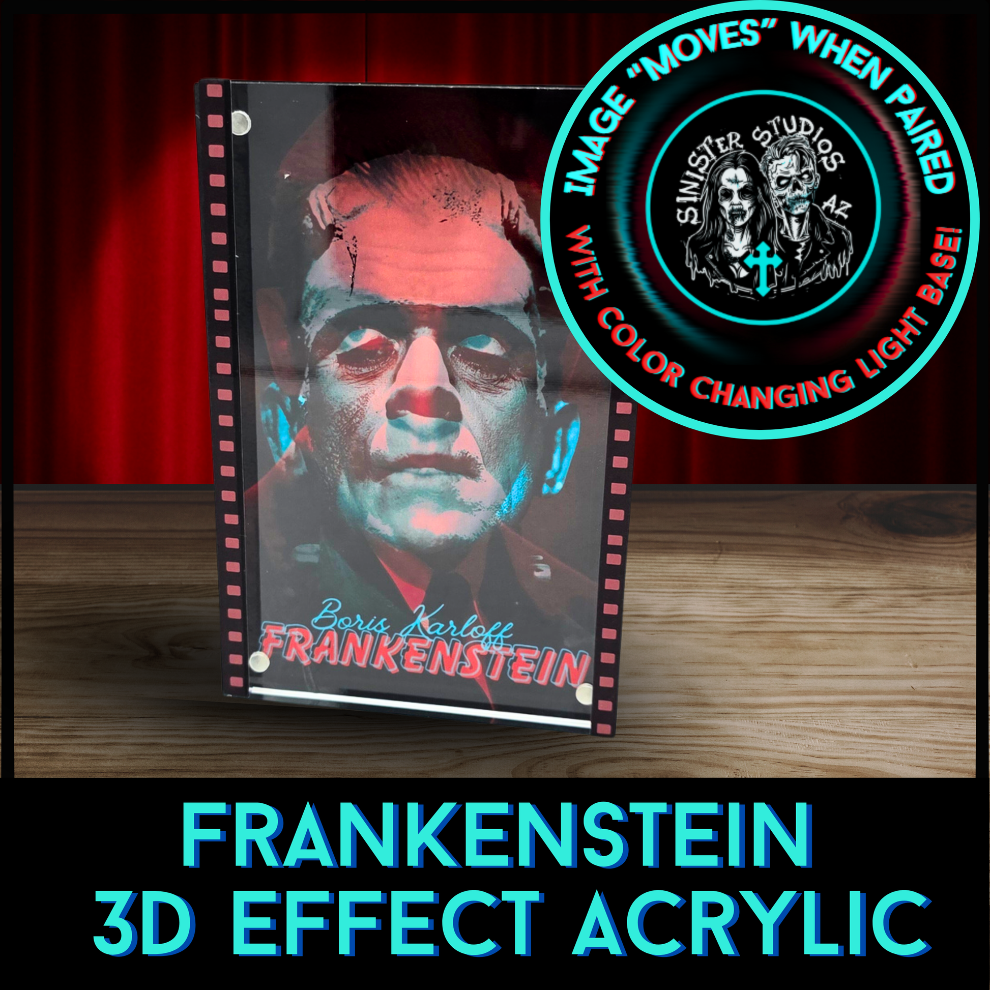 Frankenstein 3D Effect Acrylic – Color Reactive Boris Karloff Monster Illusion Art Display with Optional RGB LED Light Base