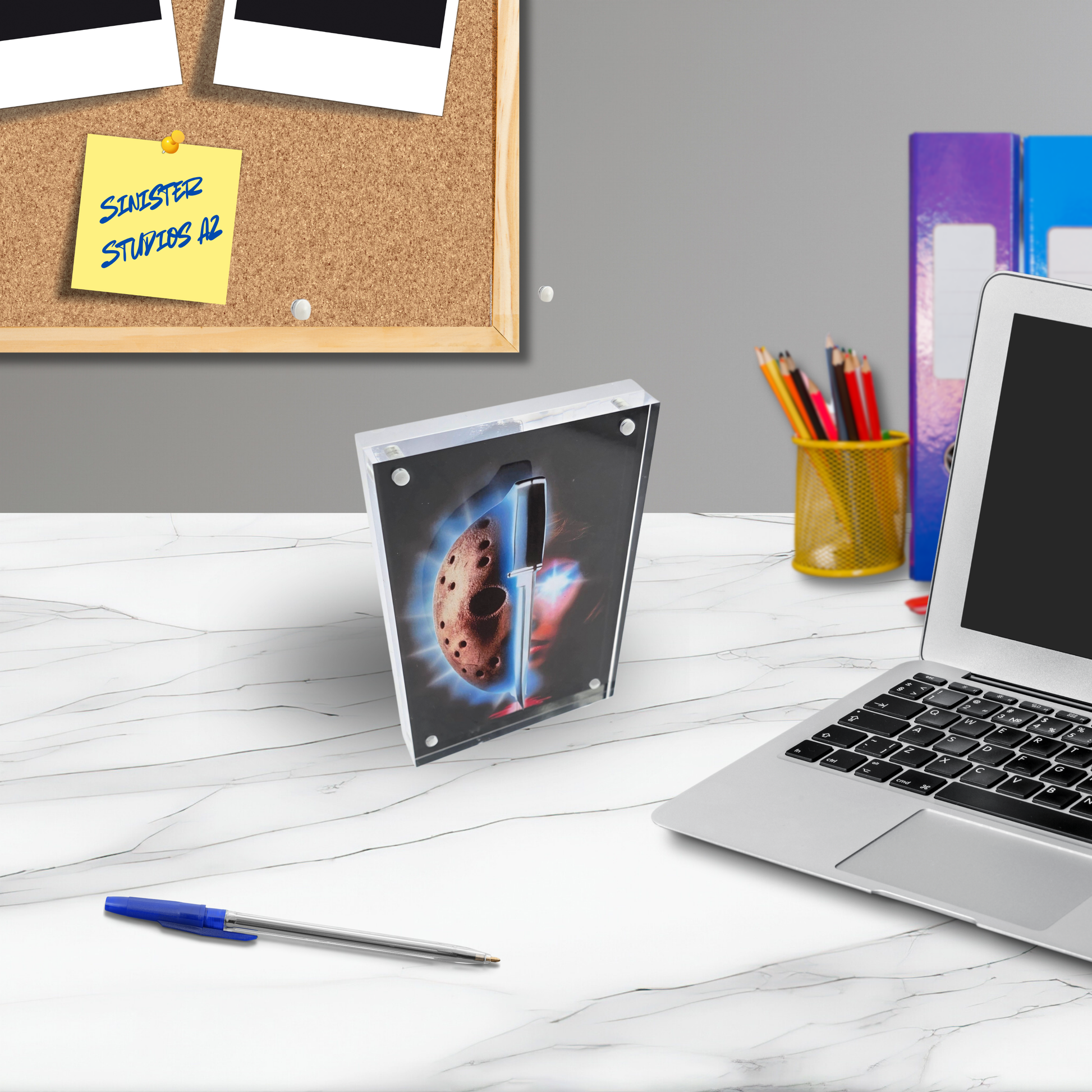 Displaying classic slasher horror with our Friday the 13th Part VII inspired 3D Effect Acrylic Display, featuring the iconic split mask and blade design that every horror fan instantly recognizes.