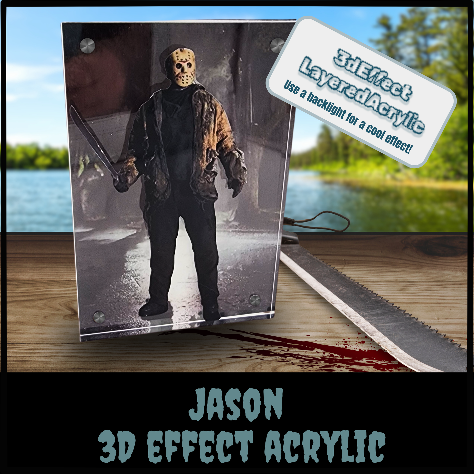 Jason Horror 3D Effect Acrylic Display | Layered Friday the 13th Decor with Optional Light Base | Horror Fan Gift | Jason Voorhees