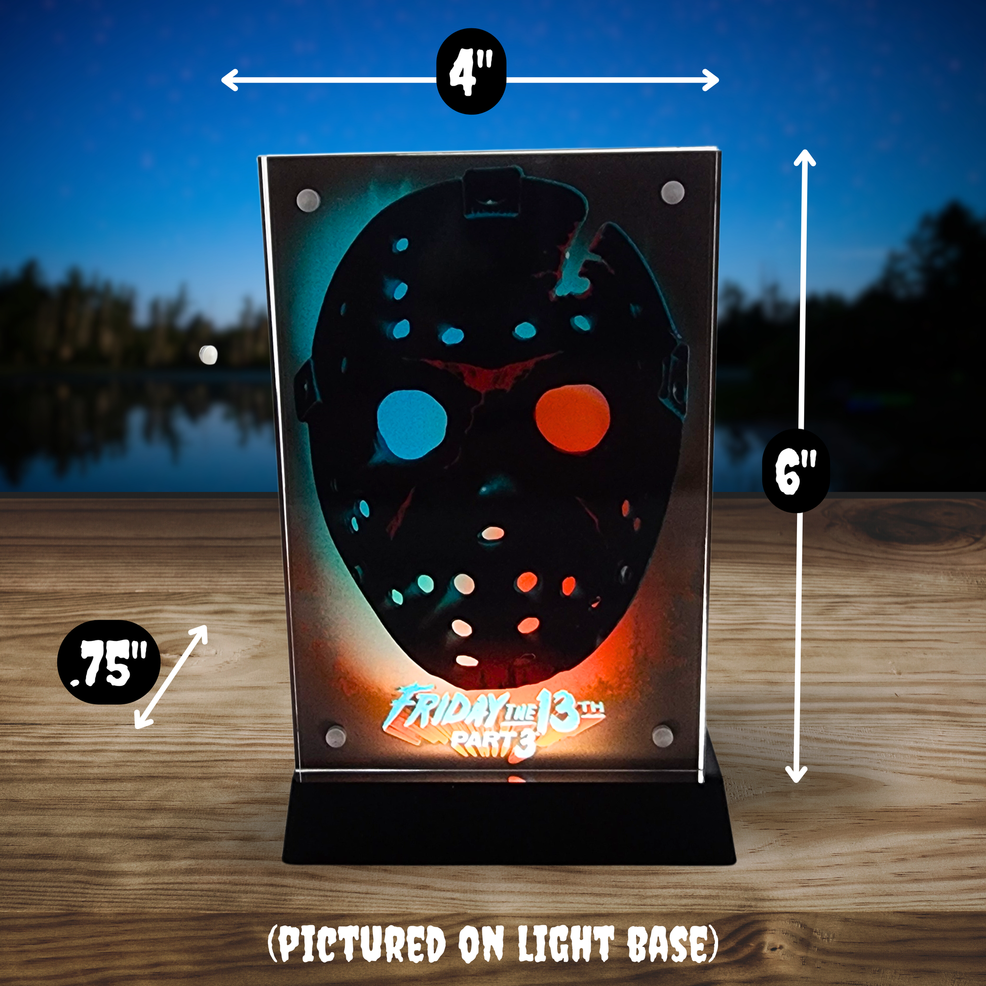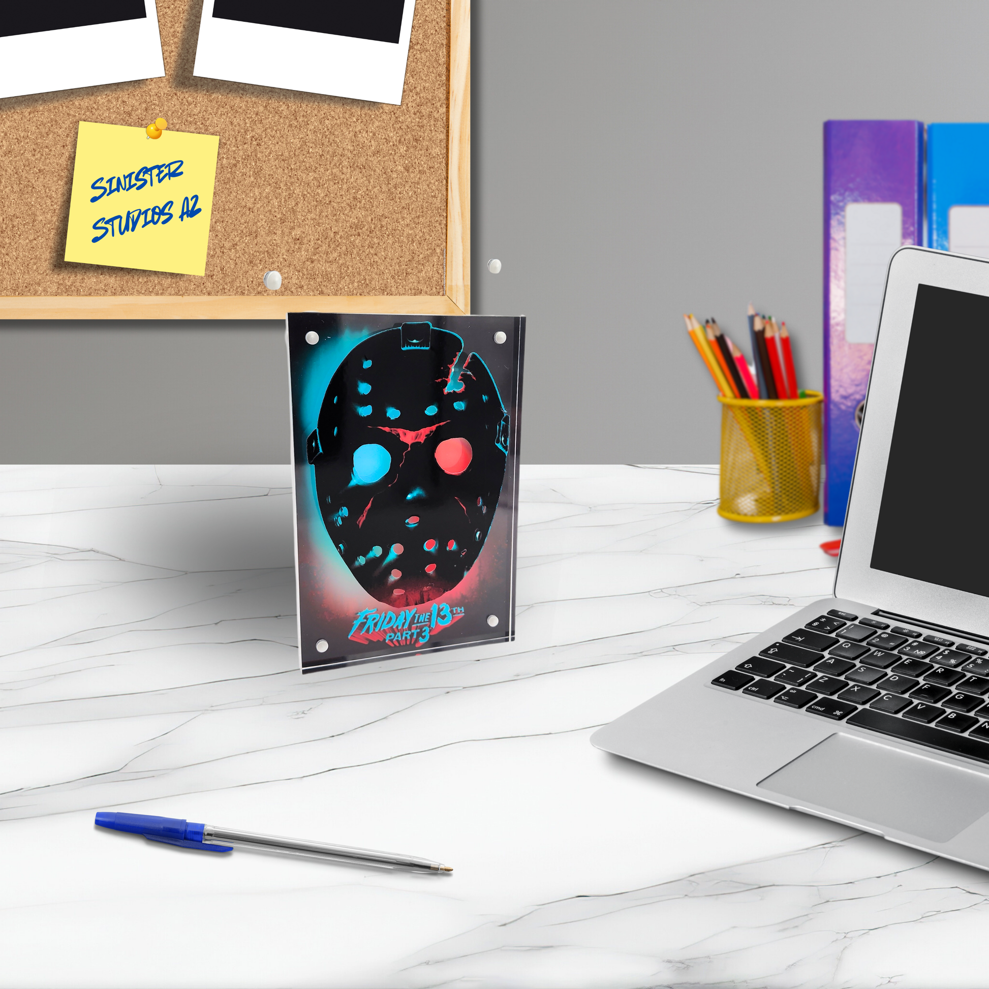 Level up your horror decor with our Jason Mask 3D Effect Acrylic Display, inspired by Friday the 13th Part 3, the film that introduced the iconic hockey mask. This layered acrylic piece features a chilling full-face design in bold neon red and blue tones, capturing Jason’s menacing stare in a bold, retro slasher style.Whether you're a lifelong Friday the 13th fan or just love spooky collectibles, this piece is sure to slash its way into your heart.