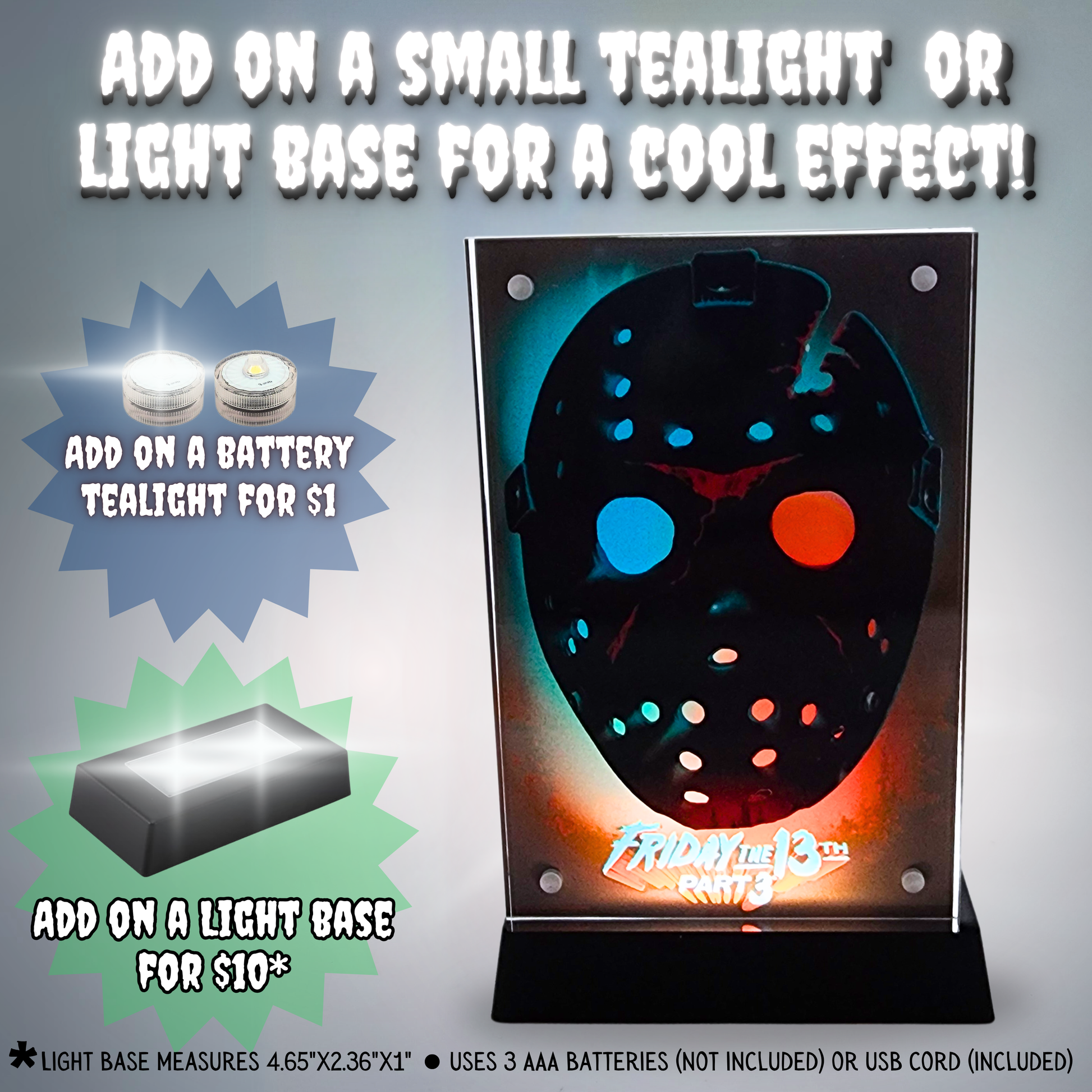 Perfect for desks, shelves, horror collections, or gift giving! The layered design pops even more when placed on a backlight. Add a battery-powered tealight or a USB light base for a dramatic glow. Handmade and assembled in Arizona by Sinister Studios AZ.