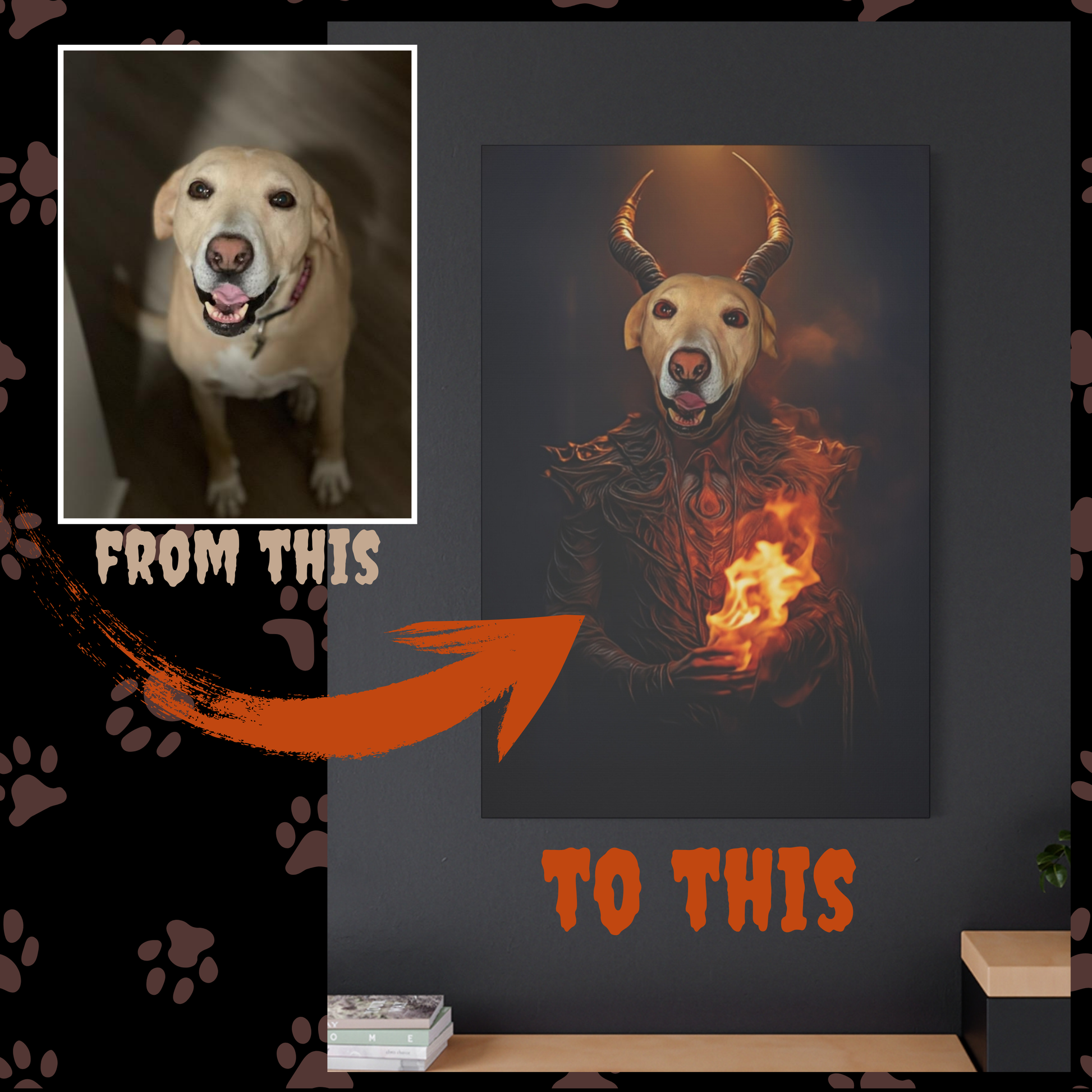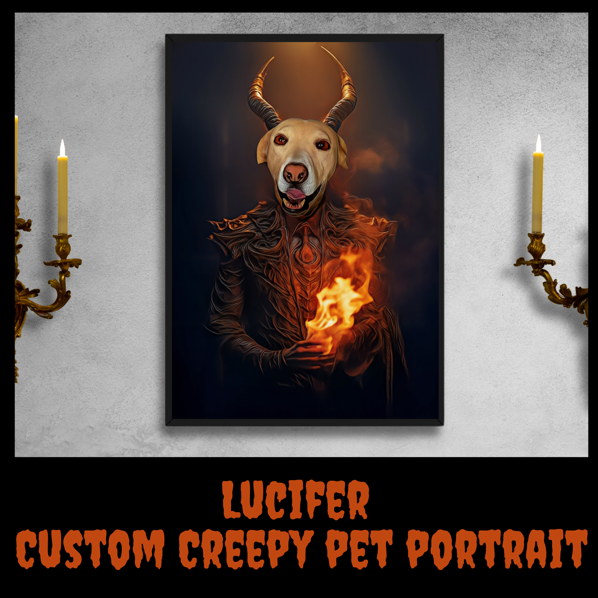 Elevate the eerie ambiance of your living space with a customized portrait featuring your pet transformed into "Lucifer"