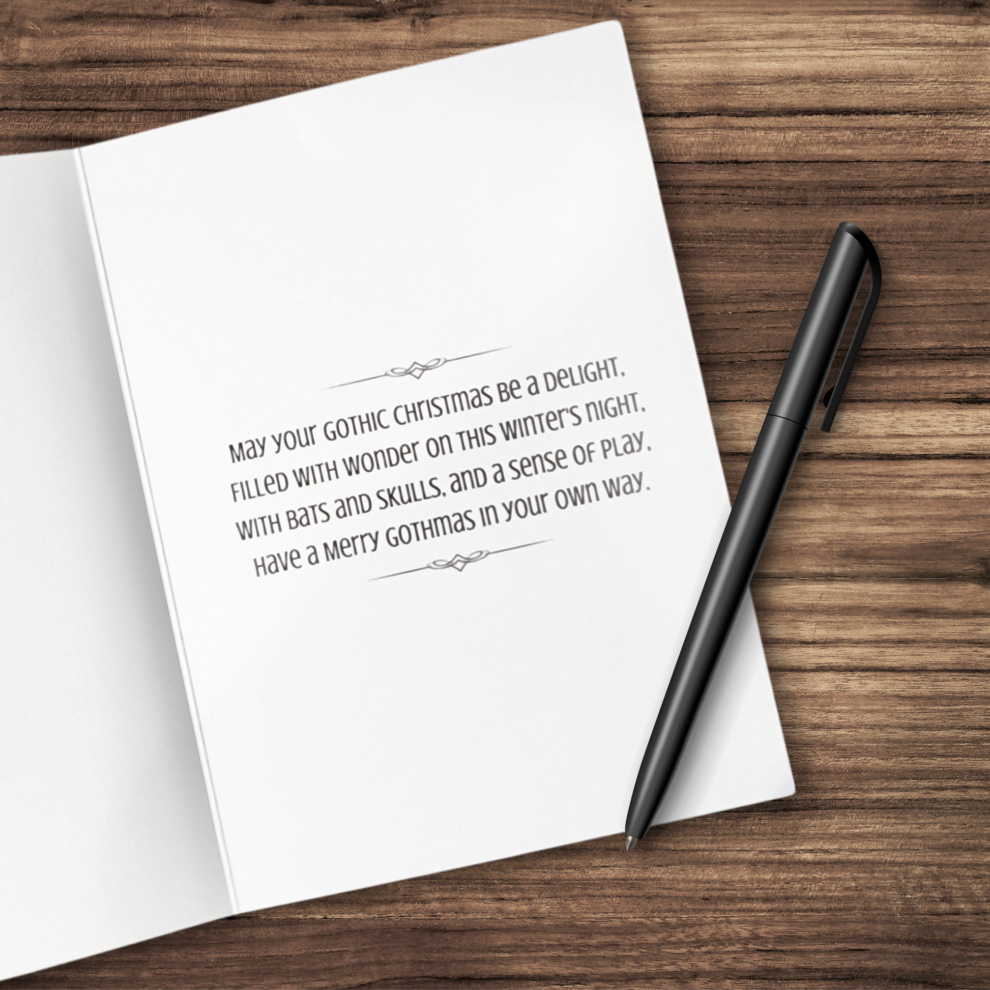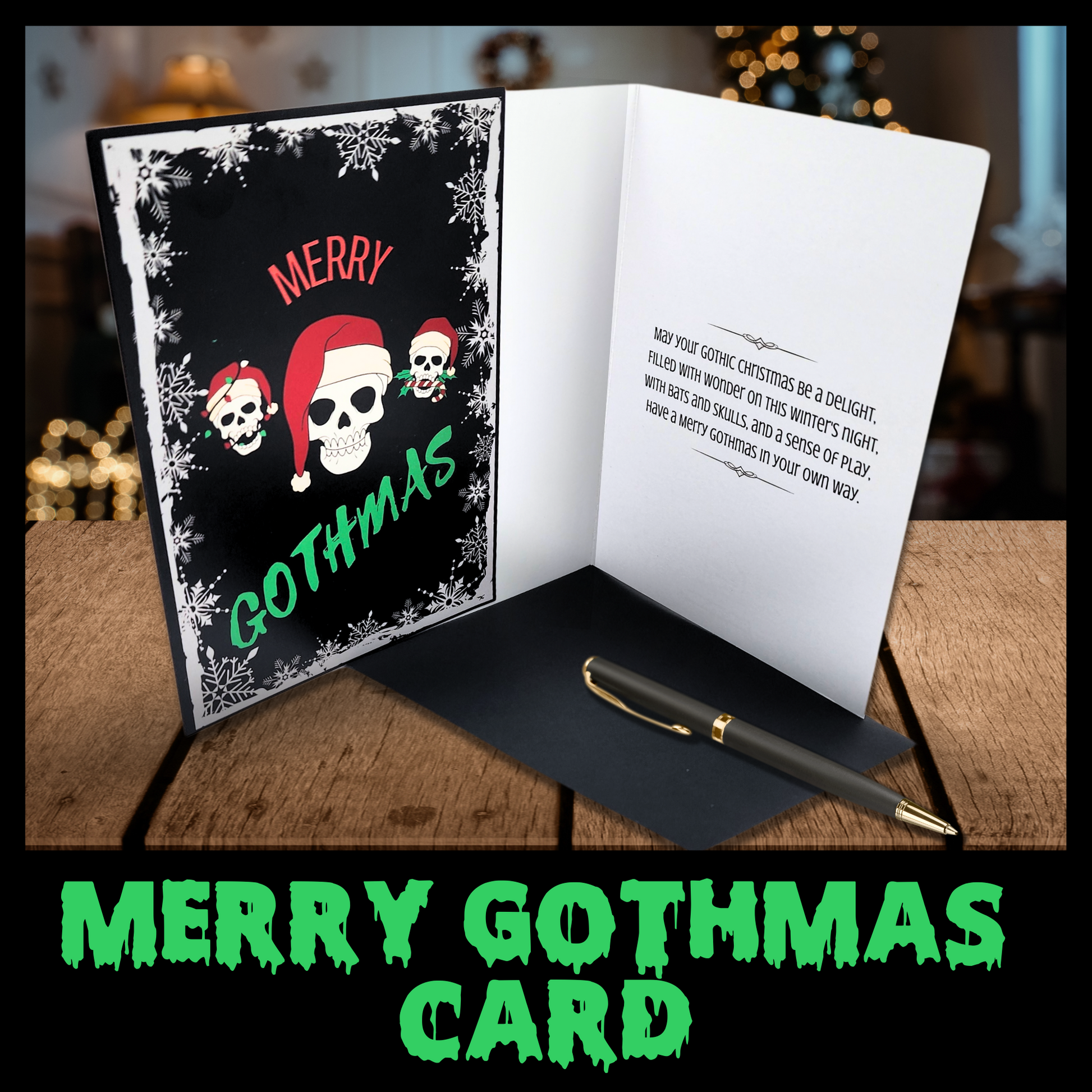 Deck the halls with skulls and spooky cheer! Our exclusive "Merry Gothmas" card is here to add a dash of darkness to your holiday greetings.