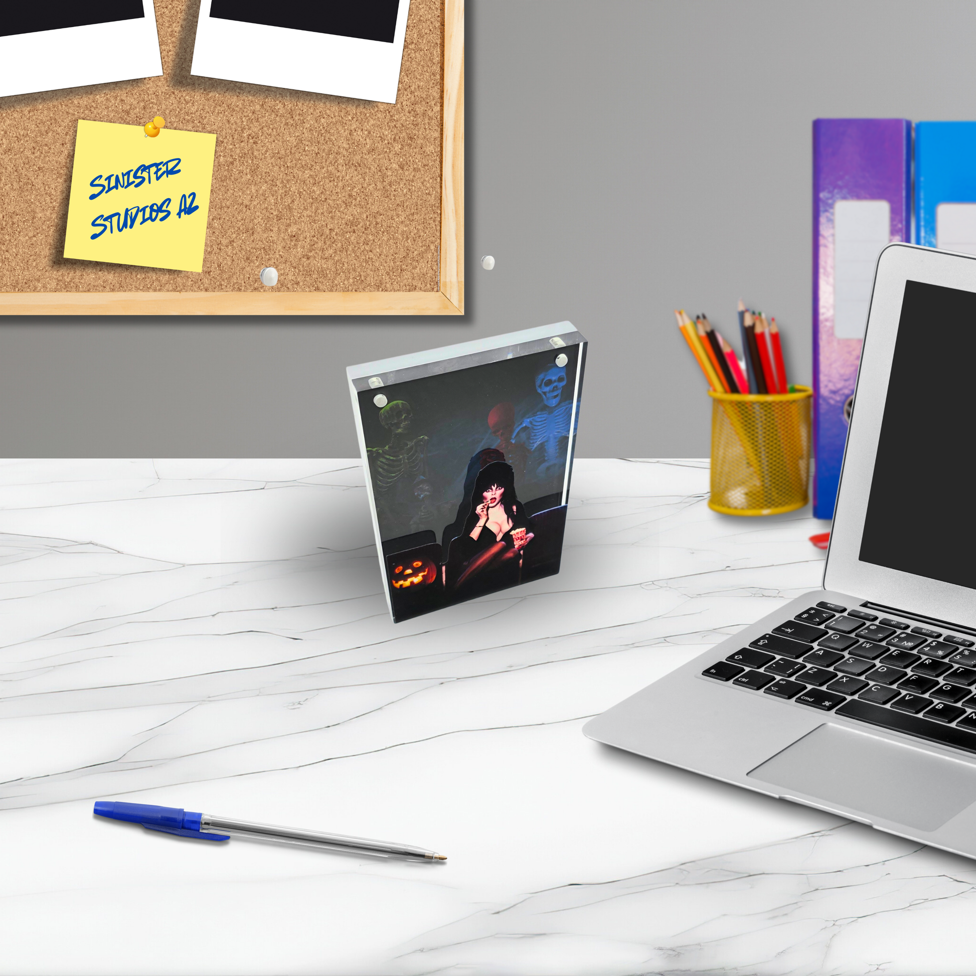 Perfect for desks, shelves, horror collections, or gothic home decor, this piece is a must-have for Elvira fans, horror hosts enthusiasts, and lovers of unique, interactive horror art. Each piece is carefully assembled by Sinister Studios AZ in Arizona. Due to the handmade nature of this item, slight variations may occur.
