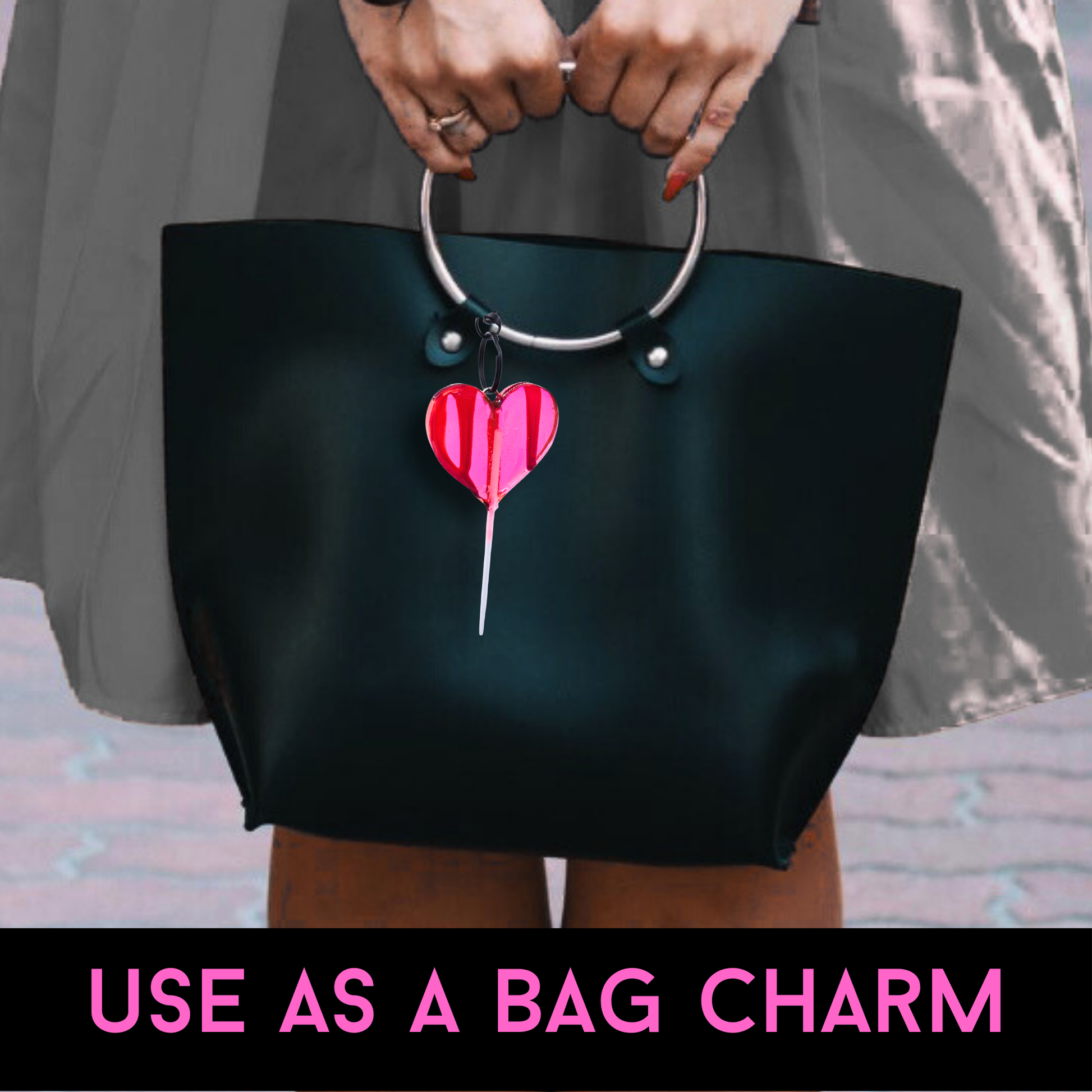 Designed for versatility, this piece can be used as a keychain or bag charm, making it perfect for everyday wear, purses, backpacks, or horror-inspired accessories. Each Love Lolli includes a black keyring and lobster claw hook, allowing for easy attachment wherever you want to make a statement.
