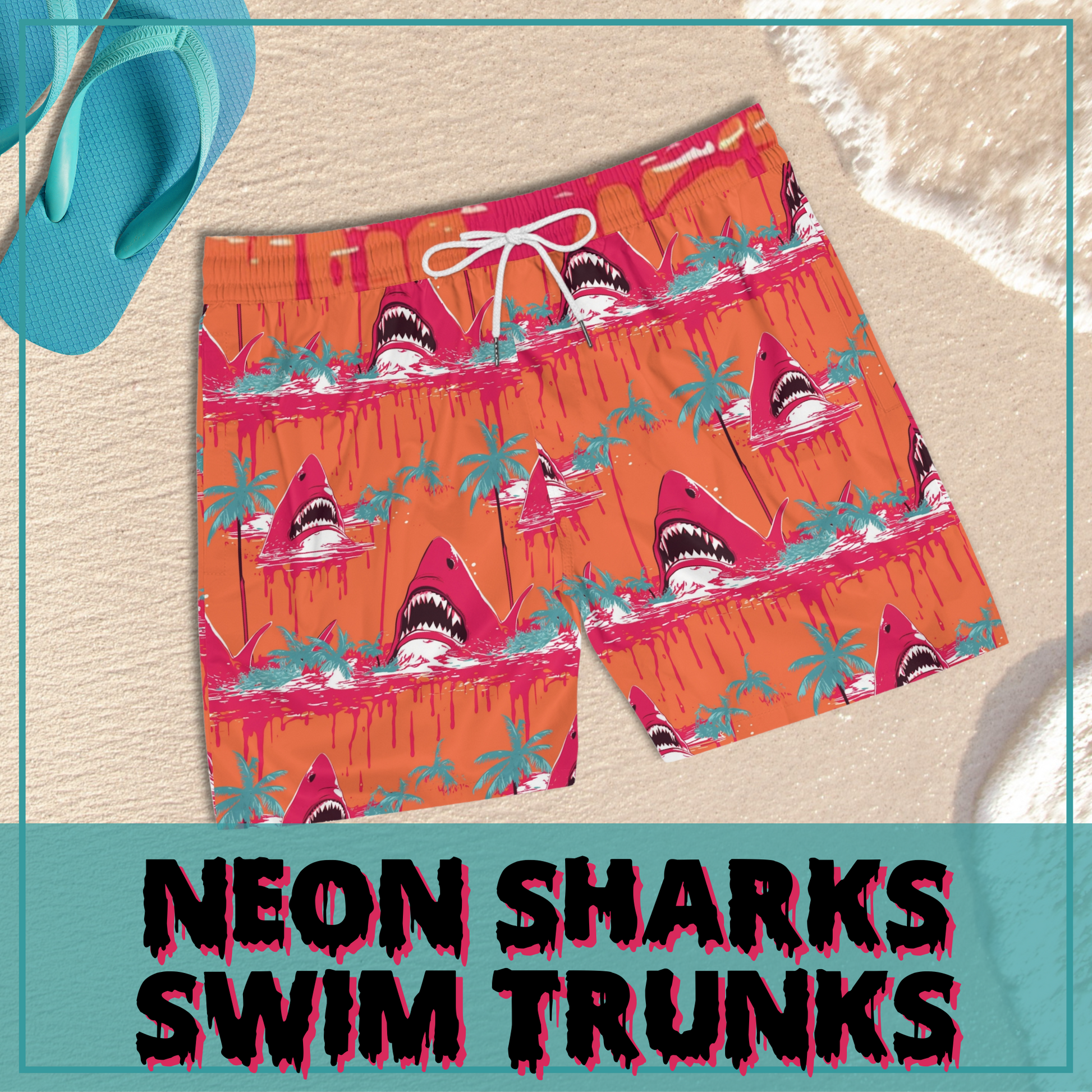Dive into bold style with our Neon Sharks Swim Trunks – the ultimate statement piece for poolside or beach adventures.