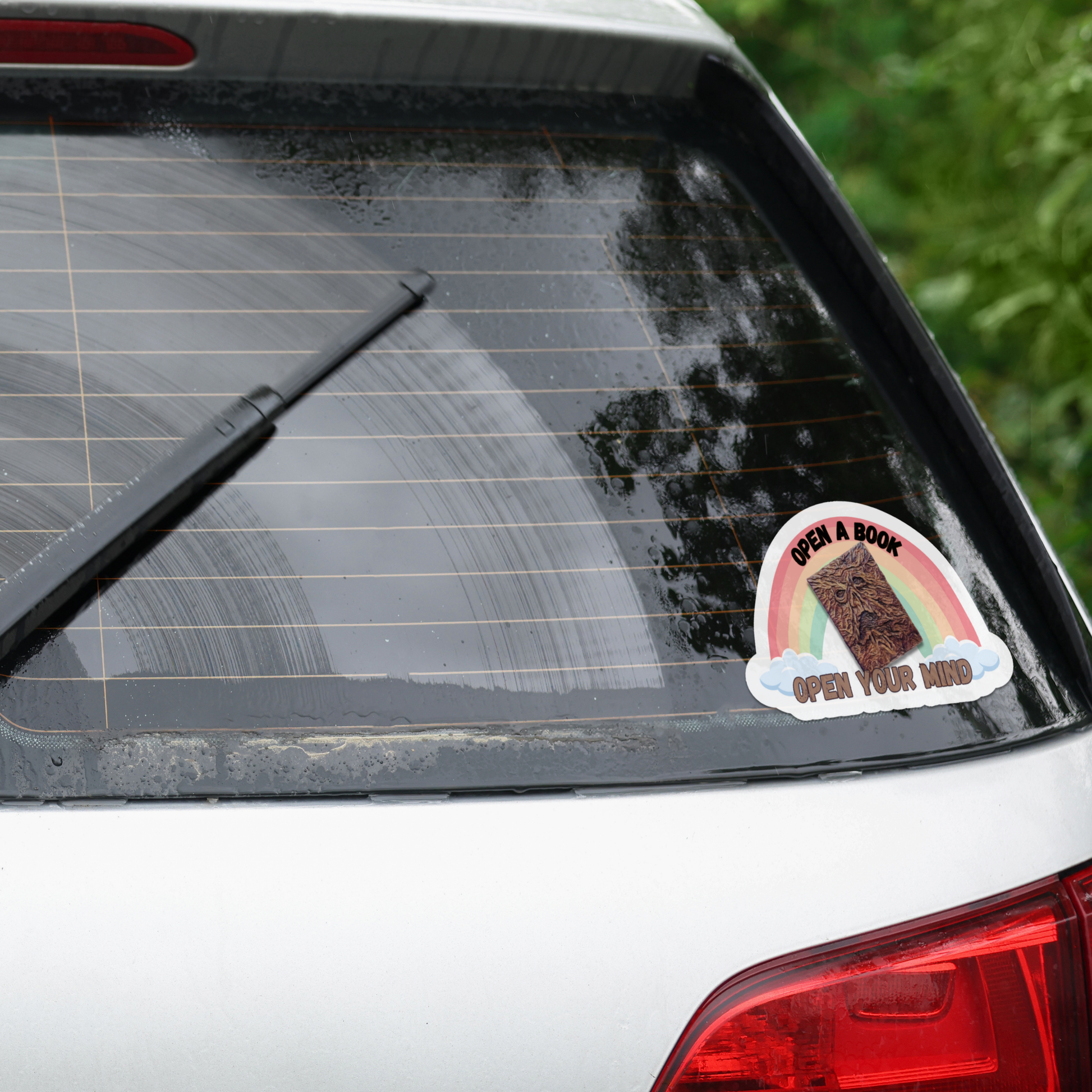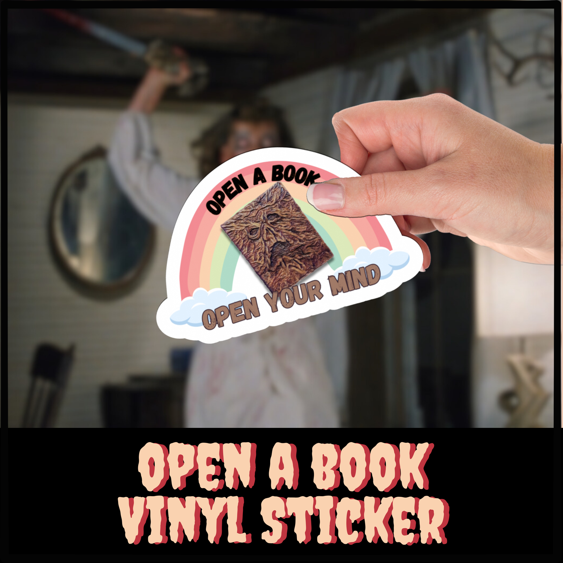 Our *Open a Book* vinyl decal is a perfect blend of dark charm and literary power. Paying homage to *The Evil Dead*, it features the notorious Necronomicon set against a striking rainbow background. This decal is more than just a fun addition to your collection; it’s a motivation to dive into the unknown—and a dire warning of what you might unleash!