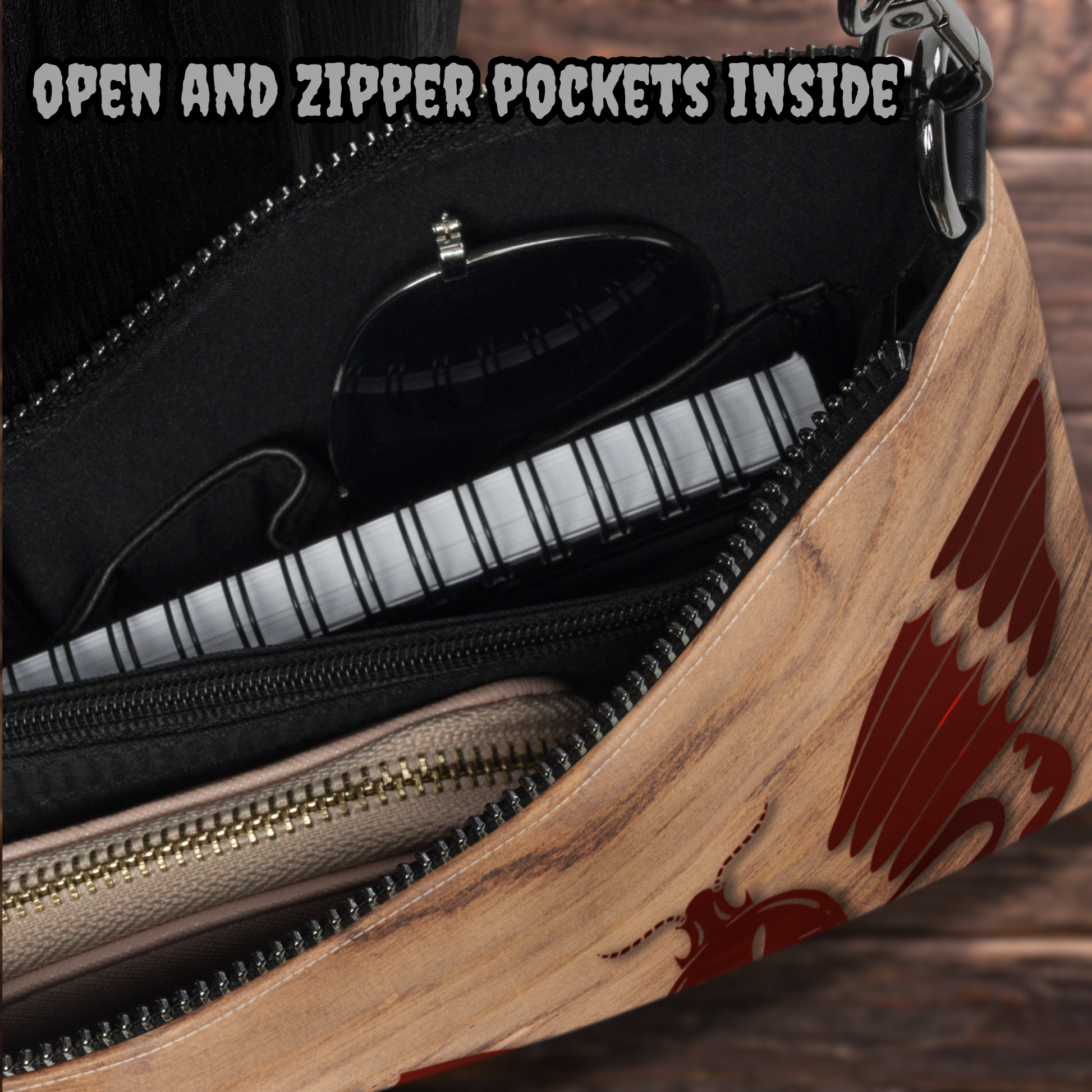 Ouija Board Crossbody Clutch Bag – Horror Moth Design, Faux Leather, Wristlet & Adjustable Strap – Gothic Occult Purse by Sinister Studios AZ