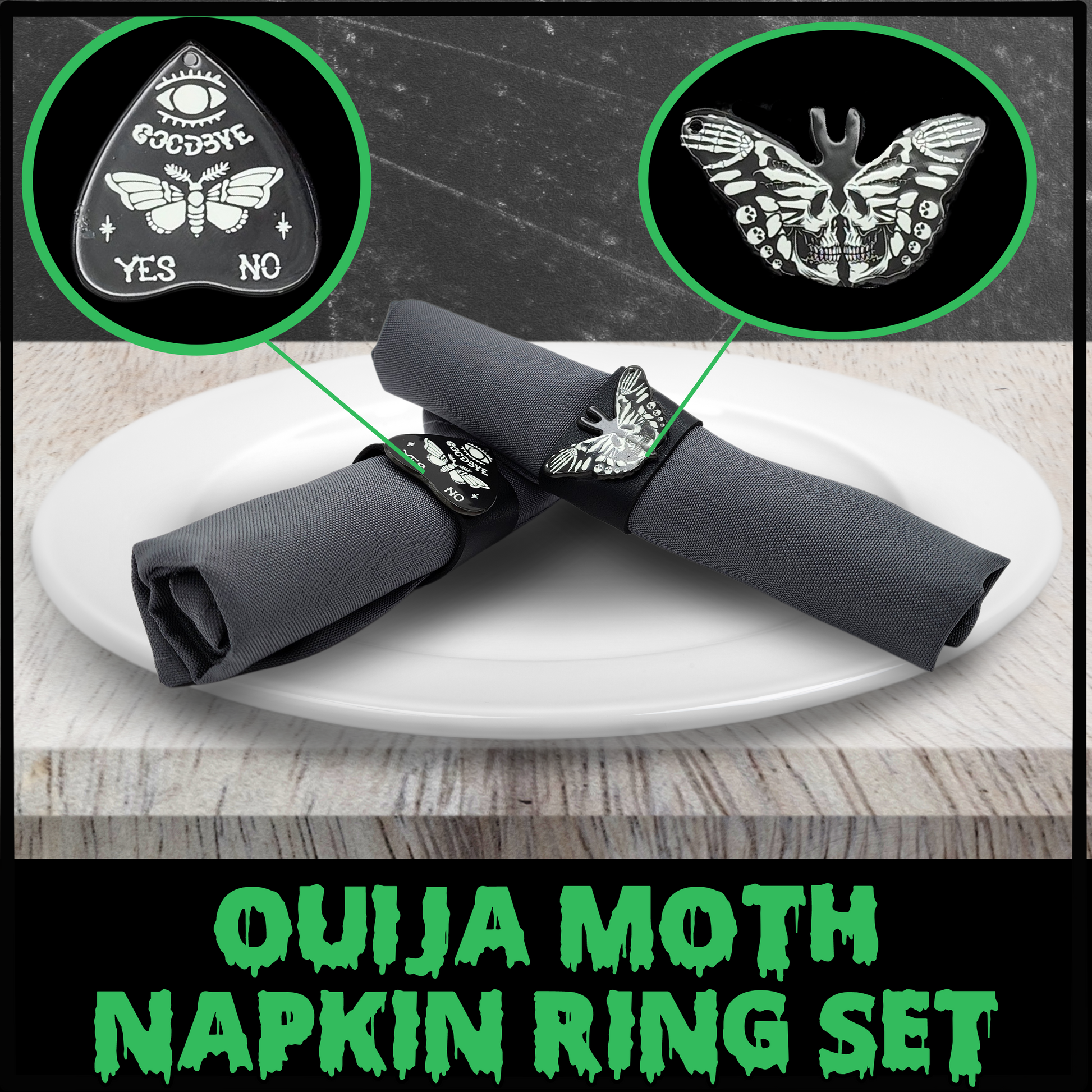 🍽️ Ouija Moth Napkin Ring Set (Set of 4)🍽️