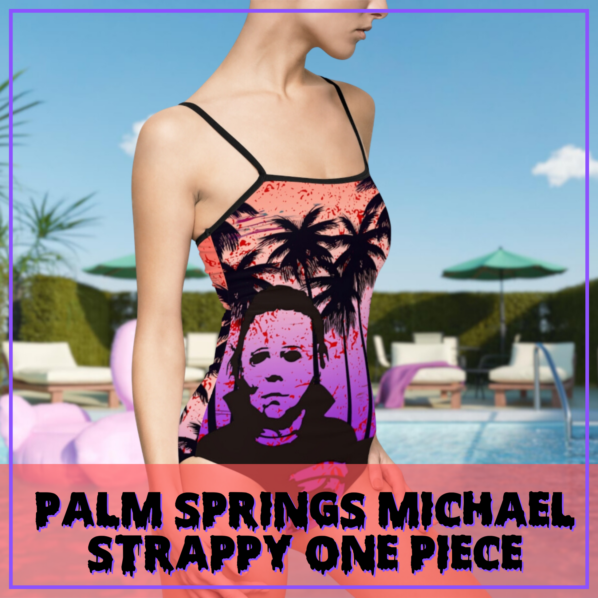 Palm Springs Michael womens strappy one piece swimsuit Halloween movie horror fan swimsuit gift for her Michael one piece swimsuit