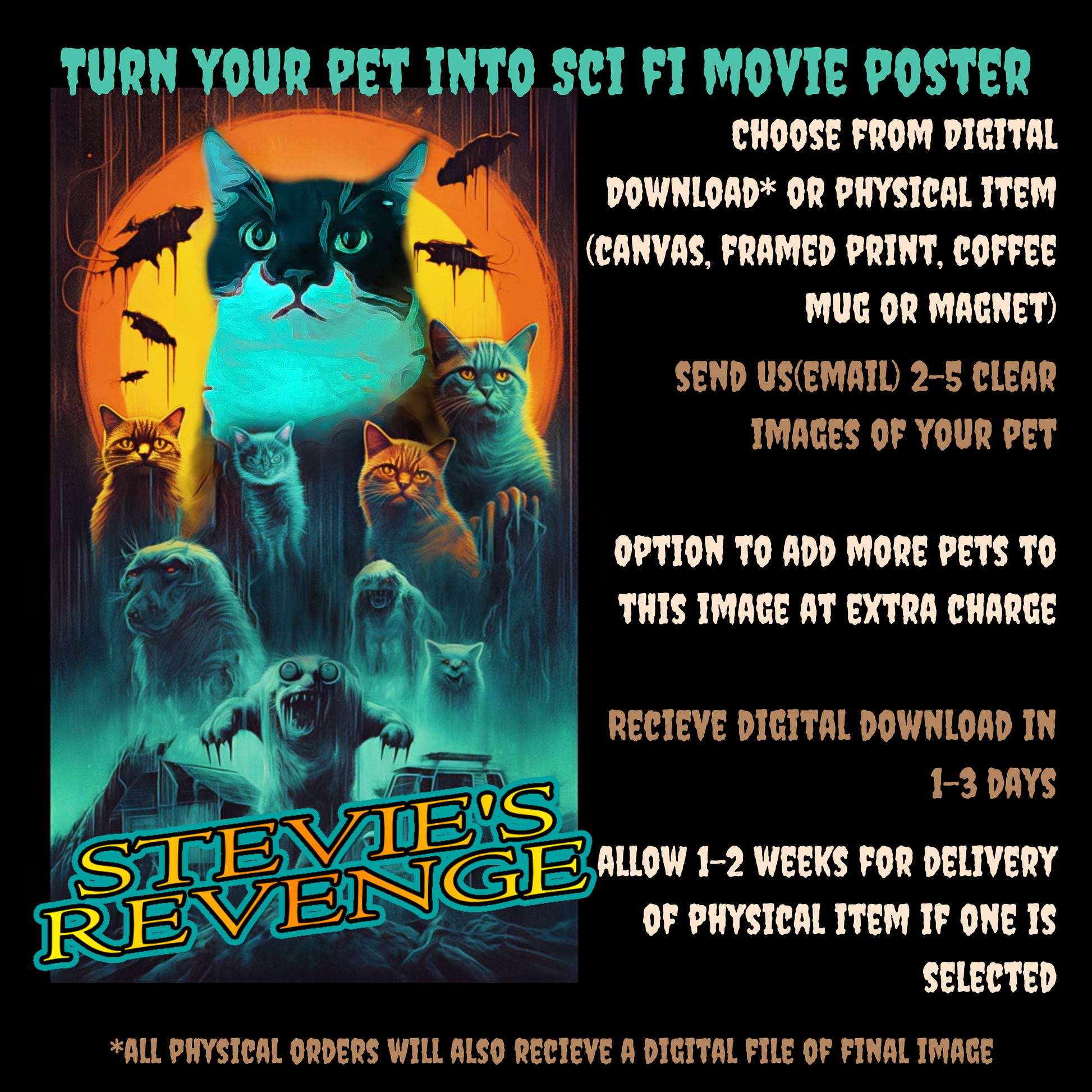 Elevate the eerie ambiance of your living space with a customized portrait featuring your pet transformed into "Pet's Revenge"
