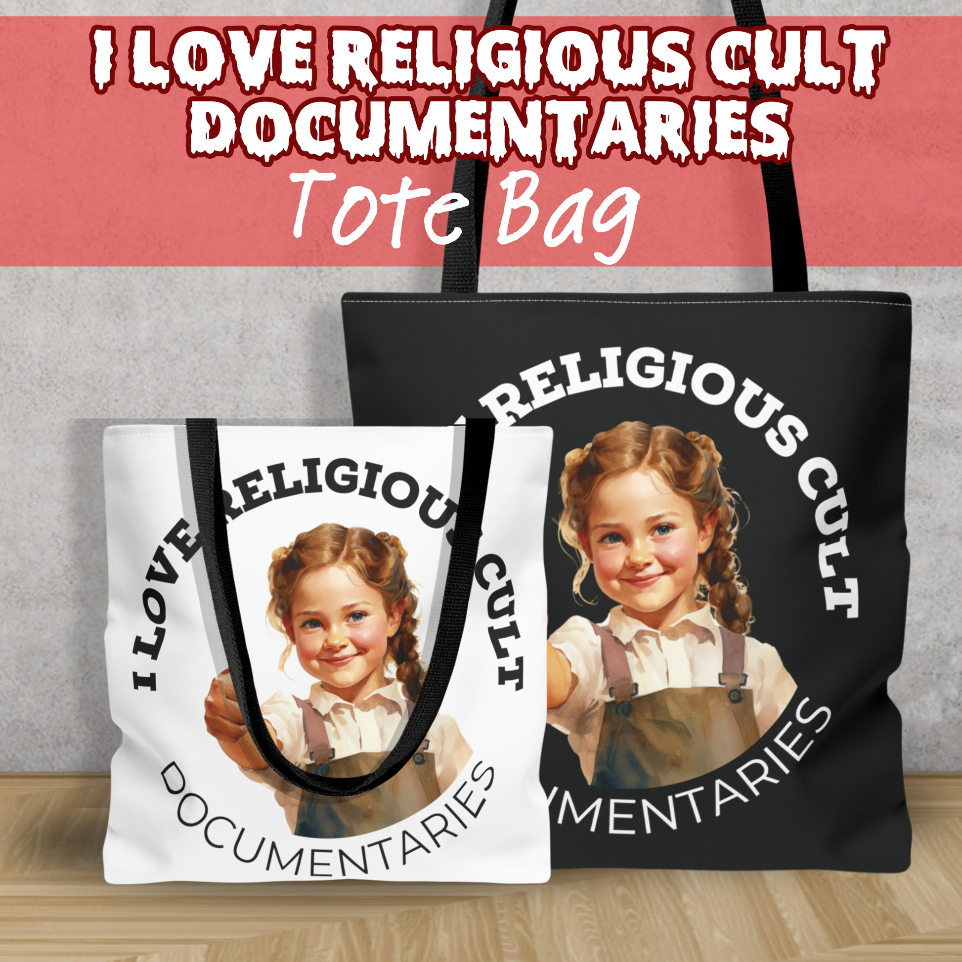 I Love Religious Cult Documentaries Tote Bag true crime tote bag gift for her birthday cult bag true crime gift reusable tote bag for cult documentary fan