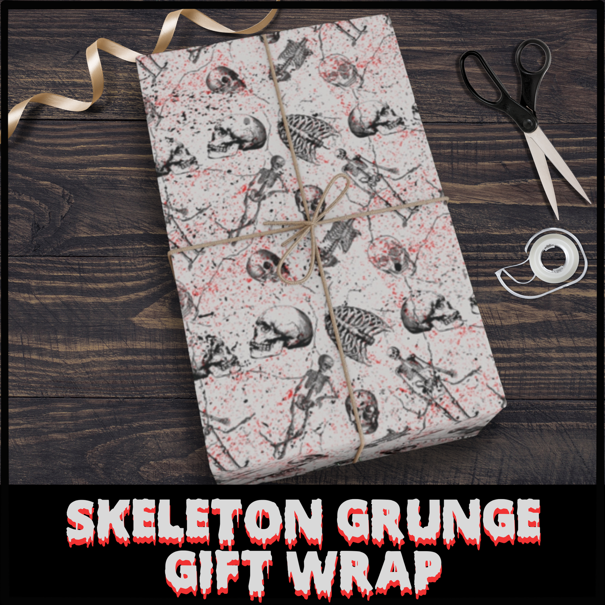 Skeleton Grunge Gift Wrap Gothic Horror skulls gift wrap grunge gothic gift wrap birthday gift wrap gothic gift wrapping paper