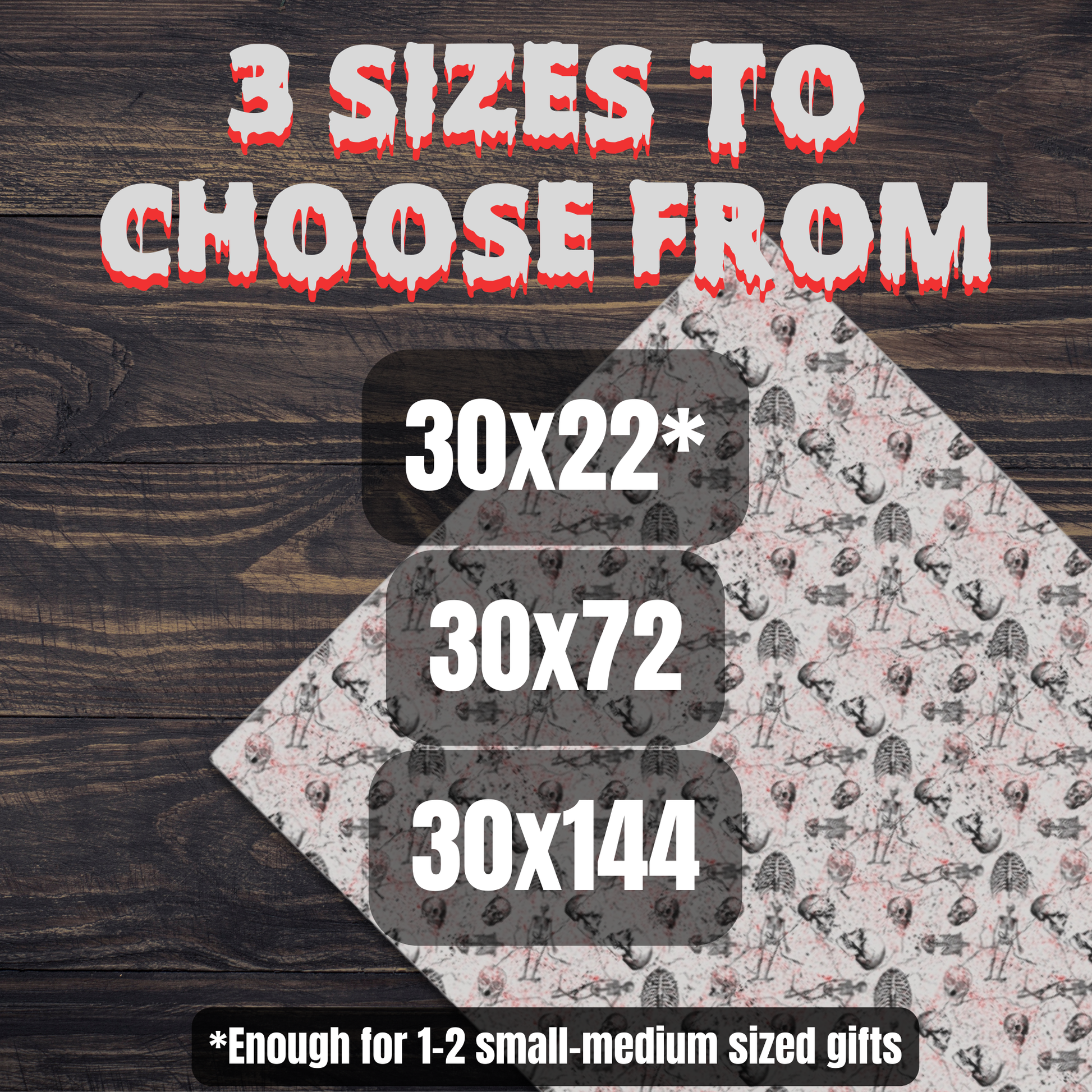 - PLEASE NOTE: the smaller size (30"x72") is just enough for 1 medium size gift or 2-3 small size gifts. Choose a larger size if you are unsure of what size you need. Measure twice. Order once.