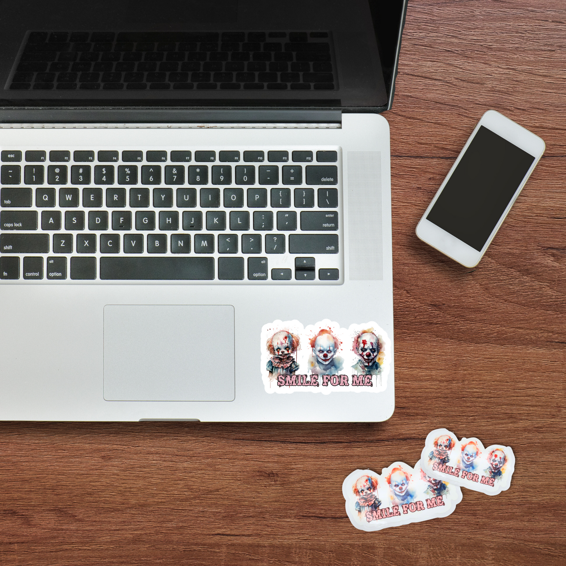Smile For Me creepy clowns kiss cut sticker vinyl decal halloween clowns halloween sticker party favor sticker gift horror vinyl sticker