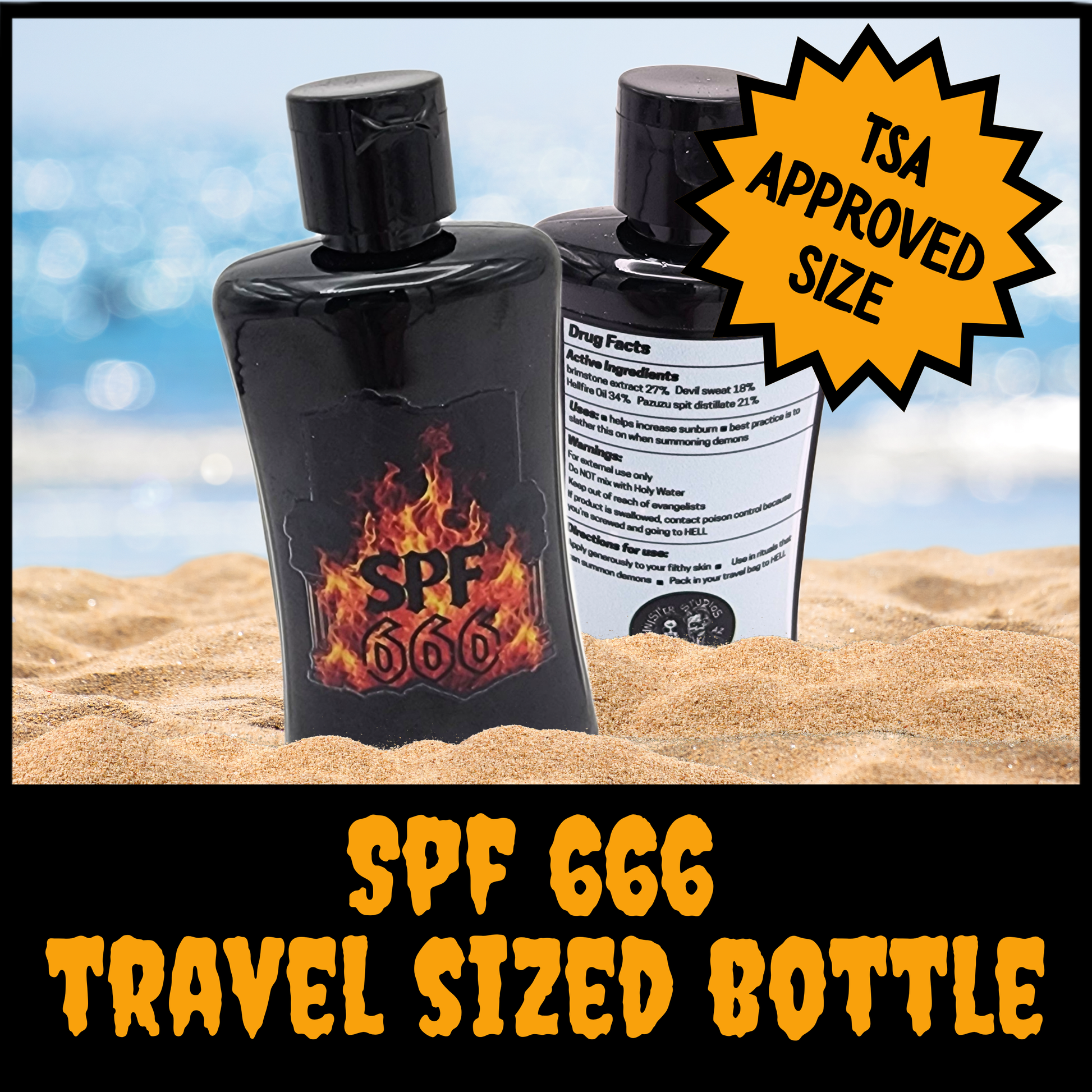 Protect yourself from the real heat with this devilishly funny SPF 666 Travel Bottle!