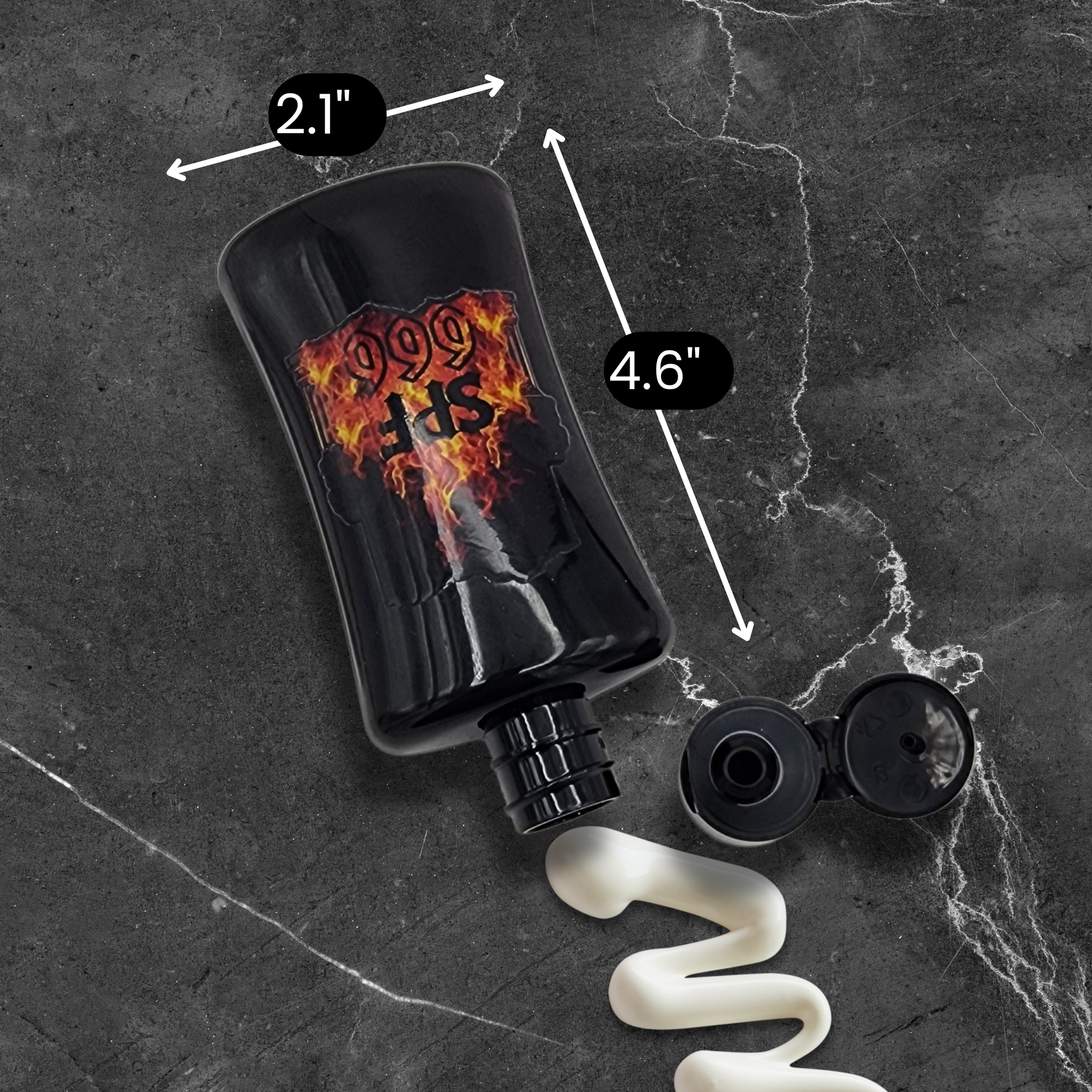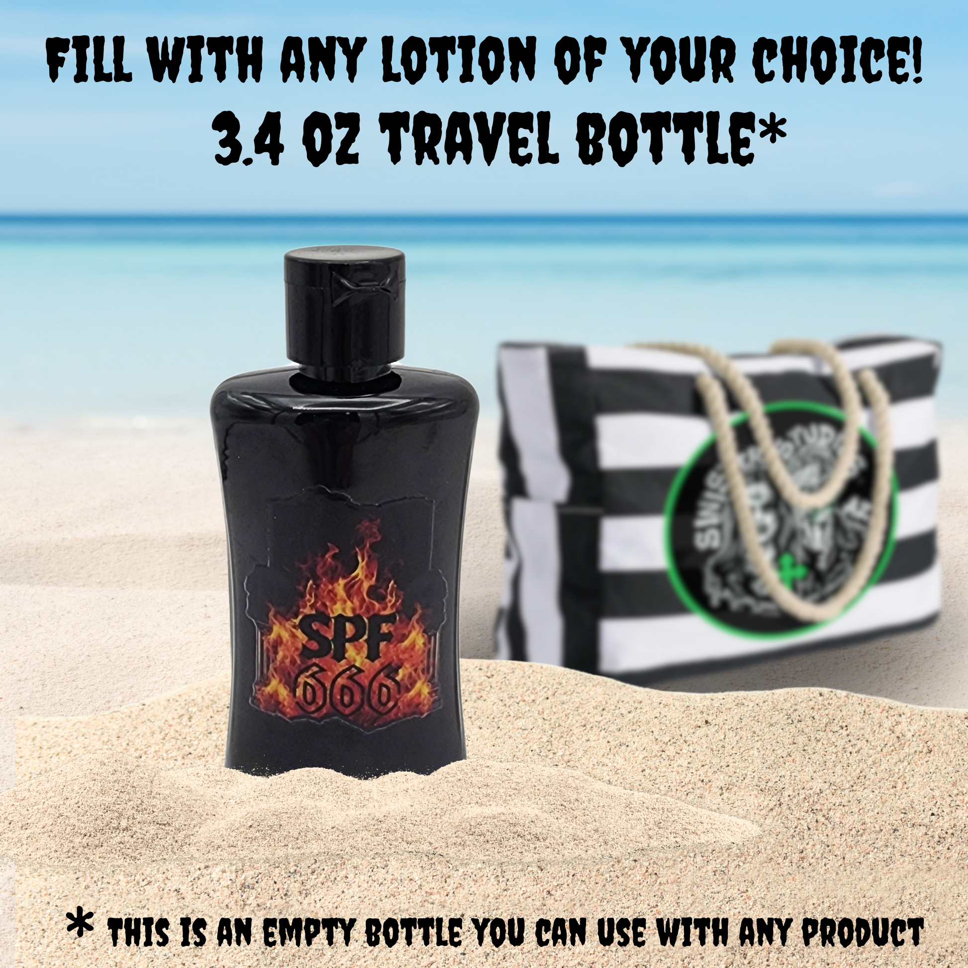 SPF 666 Funny Travel Bottle | TSA-Approved Reusable 3.4oz Container with Devilish Humor | Lotion, Sunscreen, or Whatever You Dare