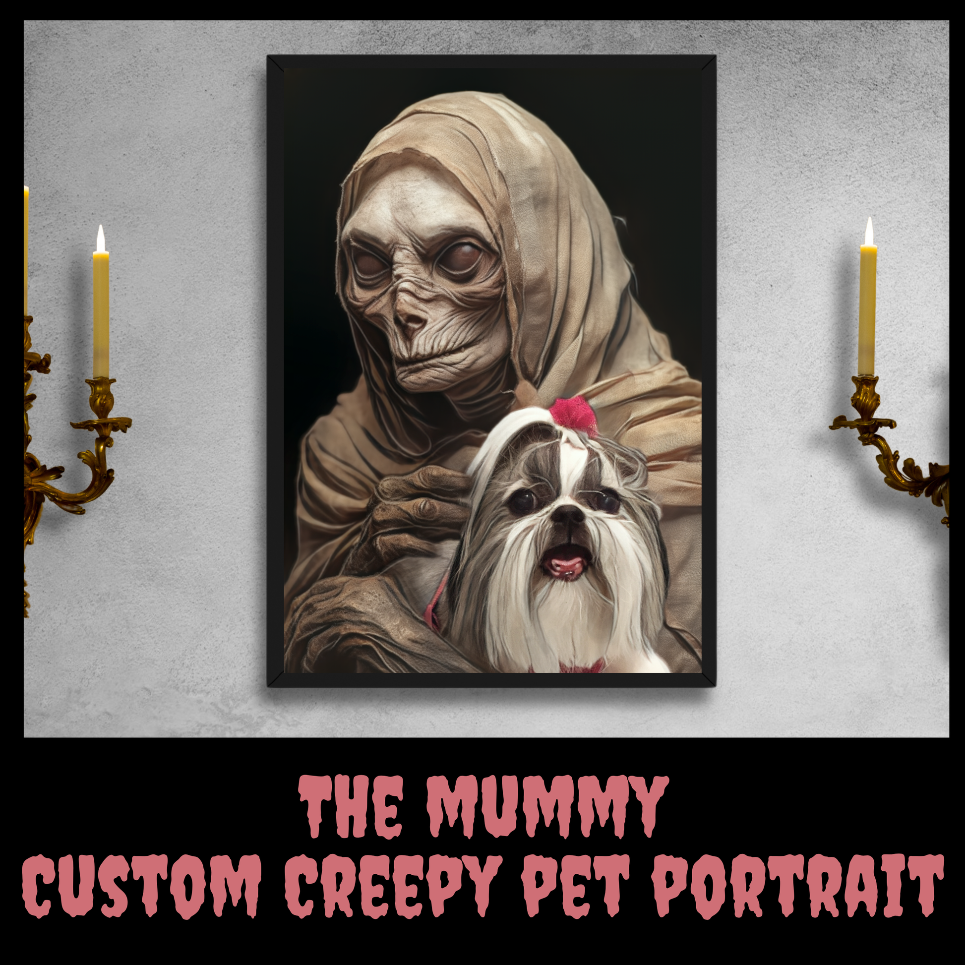 The Mummy Custom Creepy Pet Portrait Personalized Horror Pet portrait digital download creepy pet portrait gift for her