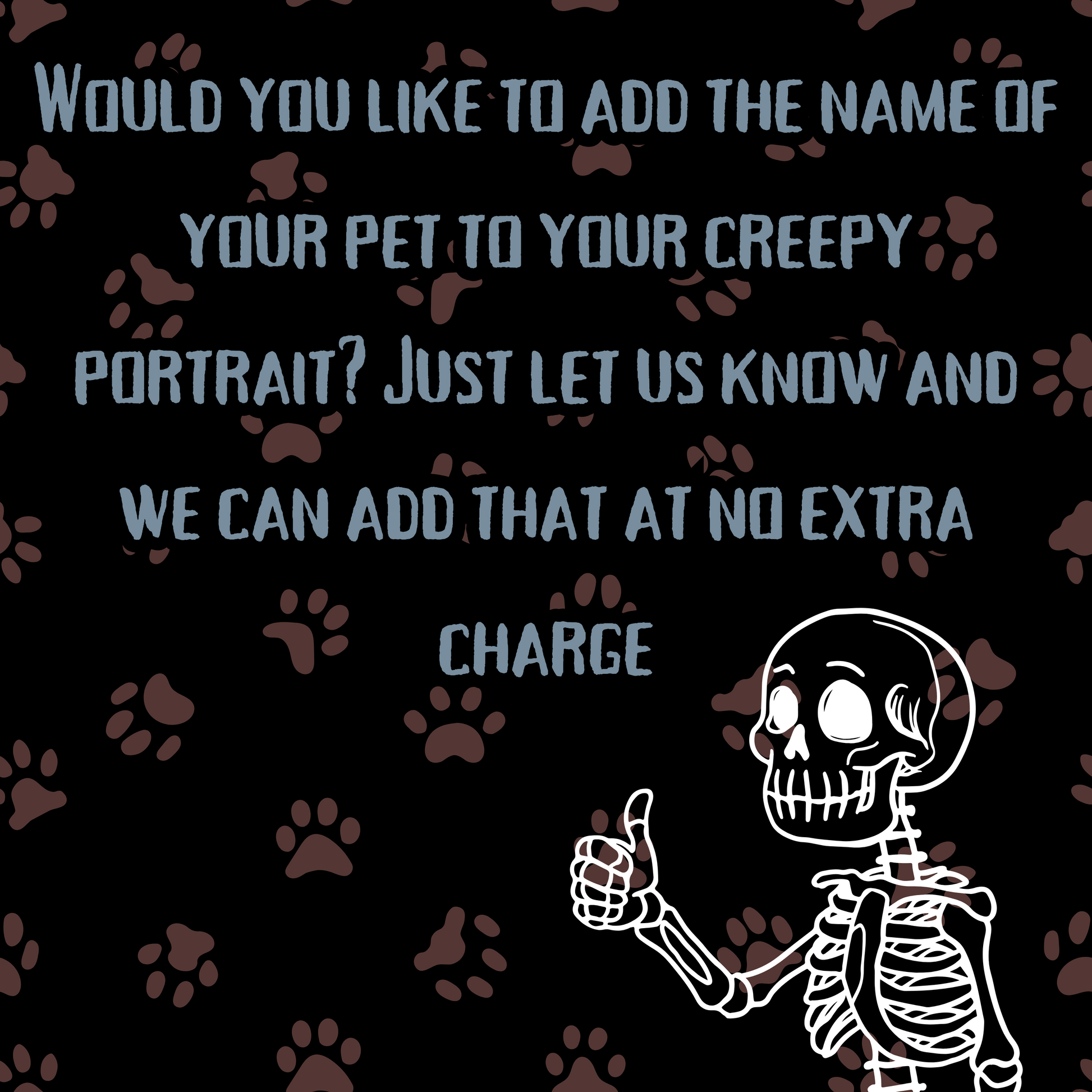 Perfect for lovers of ghost stories, gothic aesthetics, and paranormal wonders, this unique pet portrait is a mesmerizing way to immortalize your pet in a supernatural style. Whether you're looking for a ghostly tribute or simply love the macabre, The Specter makes an unforgettable addition to your decor.