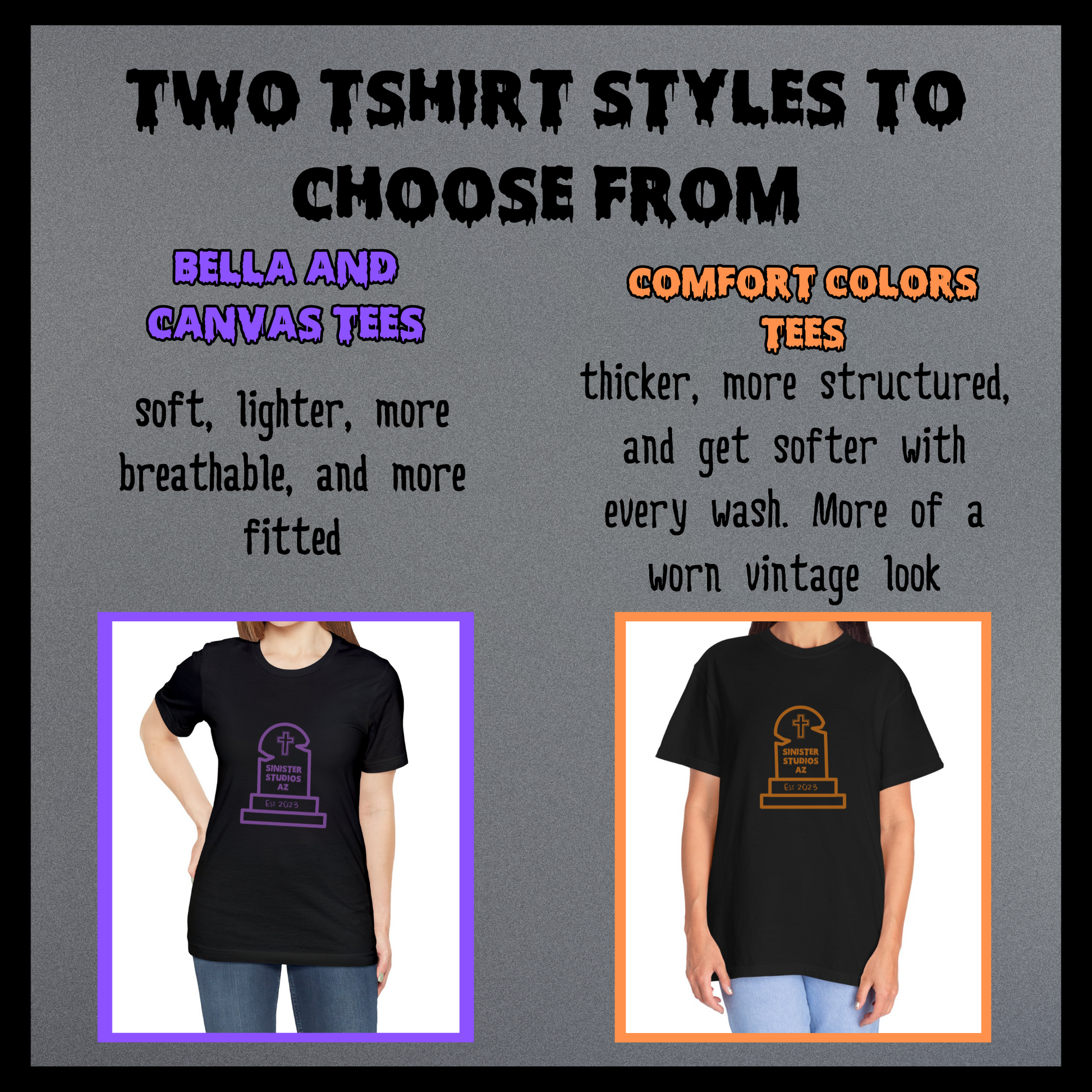 1. Bella and Canvas: For those who crave the perfect blend of comfort and style, our Bella and Canvas option offers a soft, fitted retail fit that feels as good as it looks. Available in Black, Silver, and Dark Heather Grey.